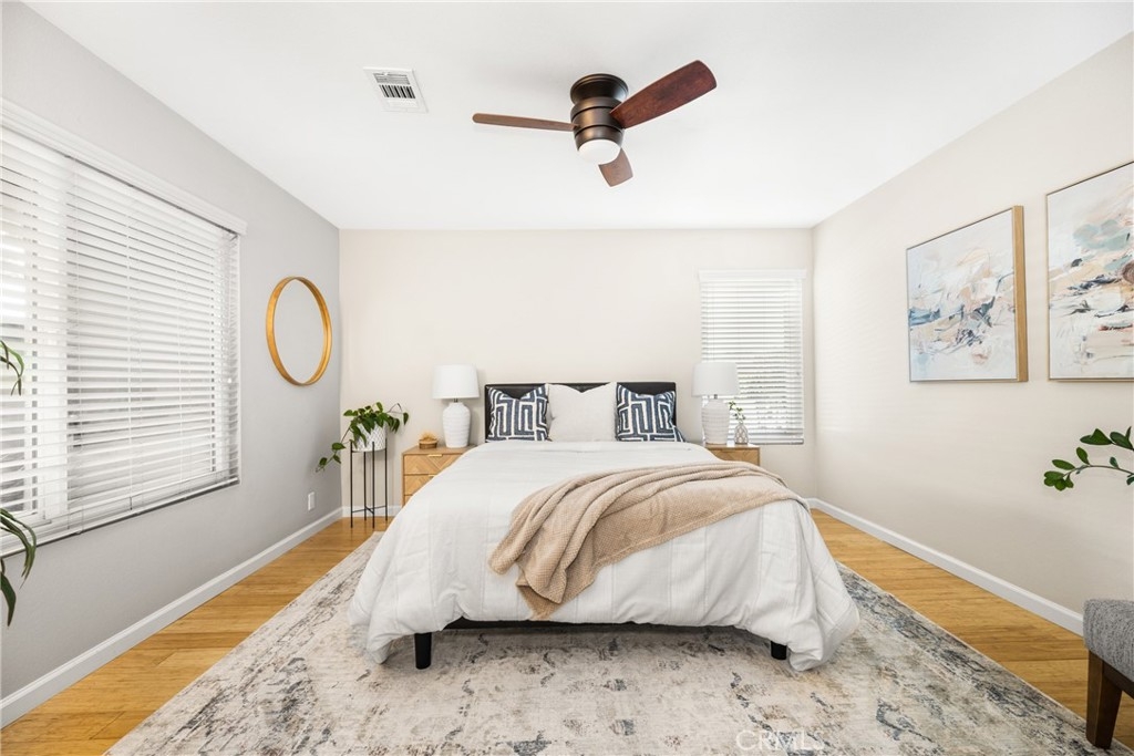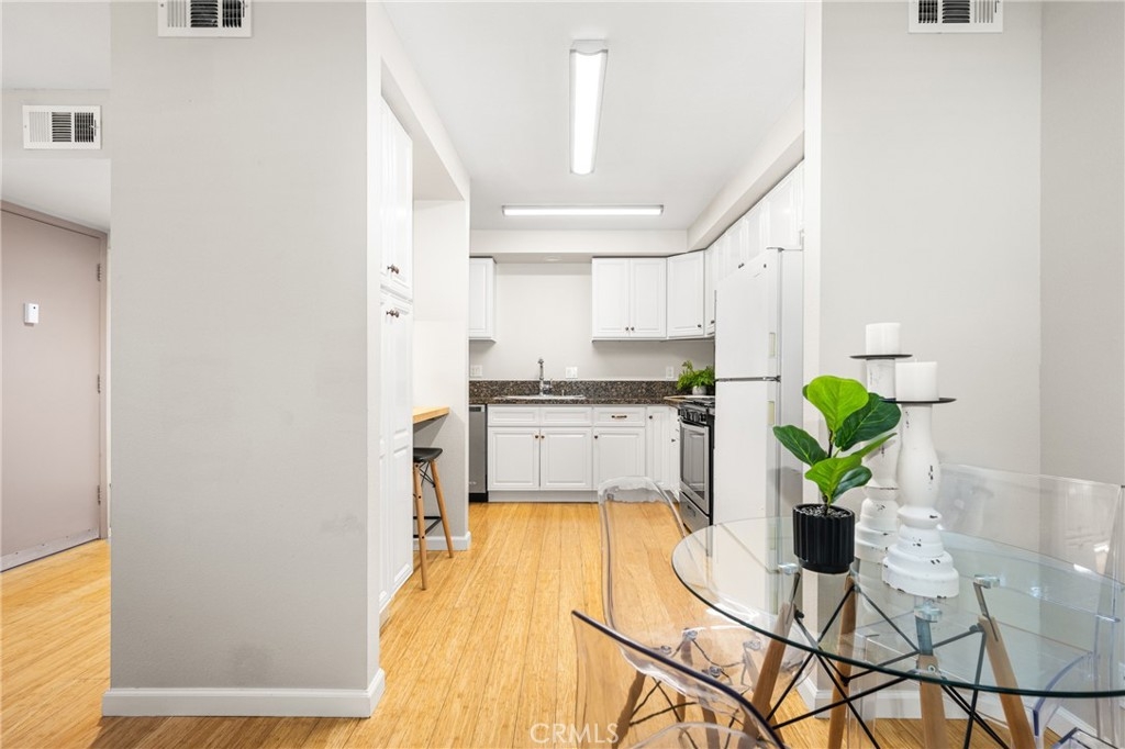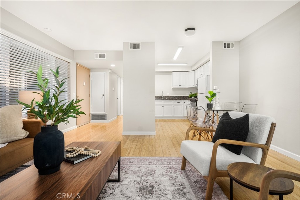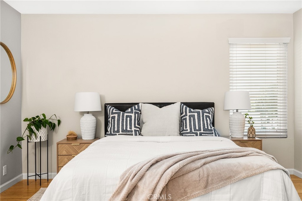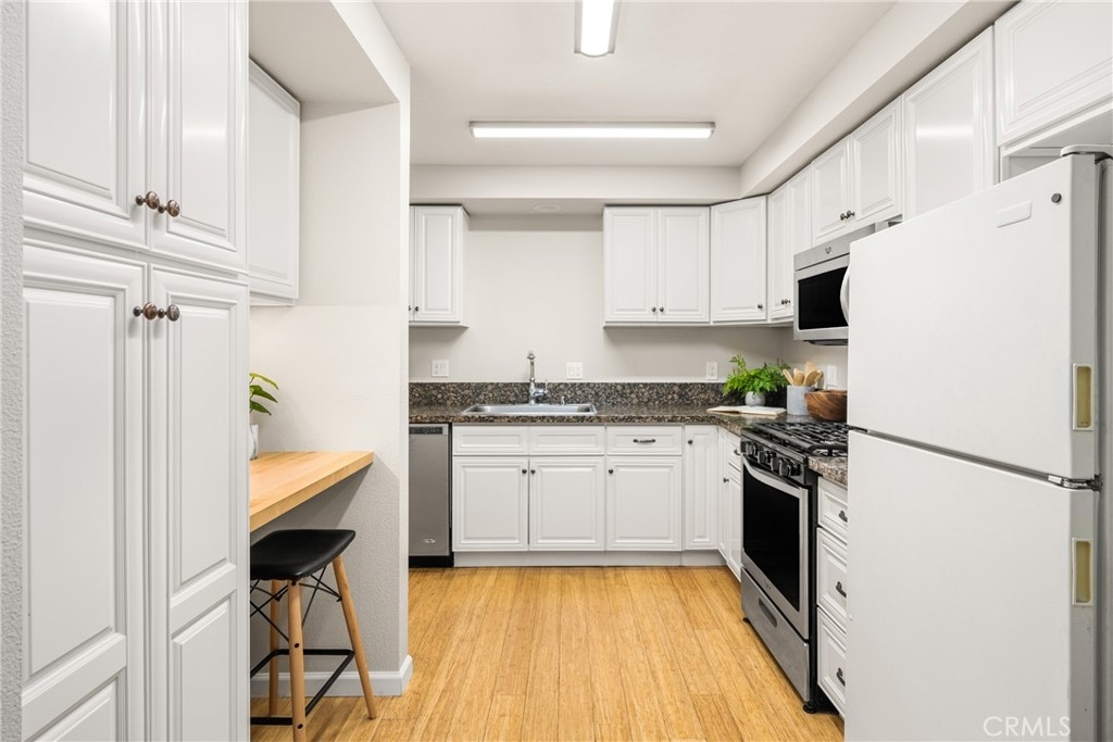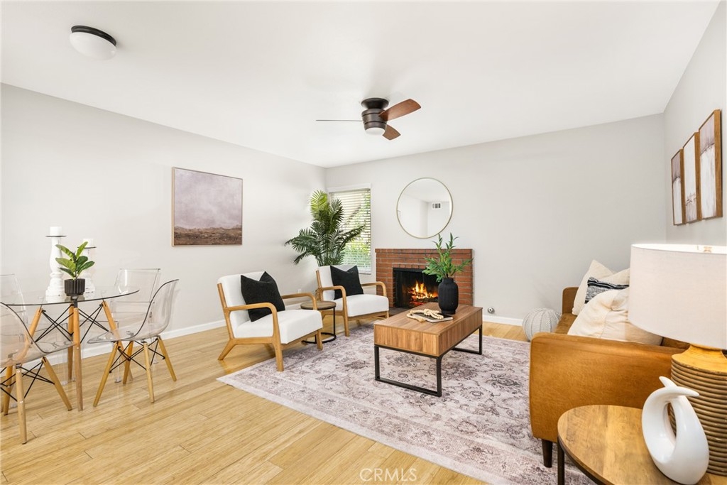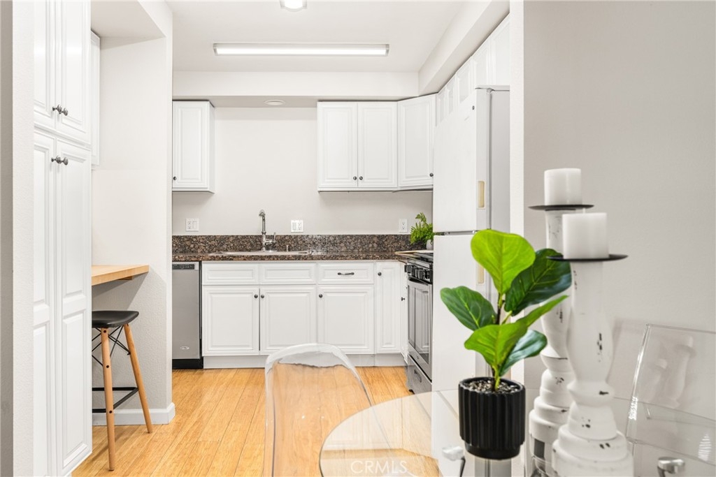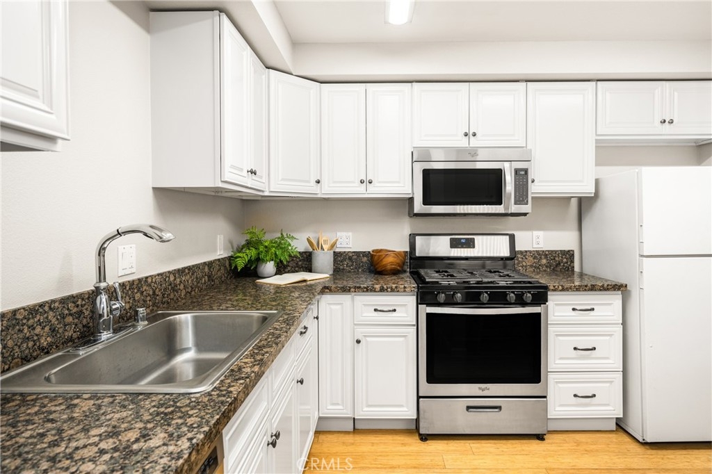 Main floor corner unit in the Cabrillo Park Townhomes in Santa Ana on the border of Tustin. A hidden gem in a quiet neighborhood right off of the 55 and 5 freeways with easy access to schools, shopping, grocery, and dining. Enjoy spacious one bedroom and one bathroom with 694 sqft with central air and heating. The complex has water streams running throughout; surrounded by mature trees, and lush greenbelts. Cabrillo Park Townhomes are well maintained and manicured. Pet-friendly complex, a community pool, club house, 3 spas, a recently upgraded gym and 2 laundry facilities. The property features bamboo flooring and a spacious white kitchen with ample counter space and a large pantry. Other recent upgrades include, double pain windows, an oversized kitchen sink, stainless steel appliances, and granite countertops. Family room features a brick fireplace. This home has a closet in the master, in addition, a bonus closet in the large bathroom. The bathroom has an oversized shower with a porcelain tile floor. A private covered front patio with a storage closet allows you to enjoy time outside and is ideal for all your entertaining needs. Convenient location in the complex close to laundry and it comes with one parking carport close to the unit #301 with storage. HOA covers water, trash, and gas for just $370.19. Conveniently close to the 22 freeway and belongs to award winning schools, Tustin unified - including Foothill High School.