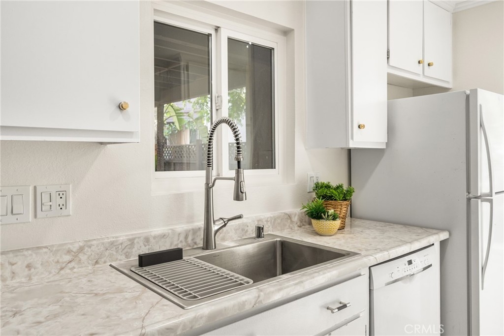 Main floor corner unit in the Cabrillo Park Townhomes in Santa Ana on the border of Tustin. A hidden gem in a quiet neighborhood right off of the 55 and 5 freeways with easy access to schools, shopping, grocery, and dining. Enjoy two bedrooms and two bathrooms with 974 sqft with central air and heating. The complex has water streams running throughout; surrounded by mature trees, and lush greenbelts. Cabrillo Park Townhomes are well maintained and manicured. Pet-friendly complex, a community pool, club house, 3 spas, a recently upgraded gym and 2 laundry facilities. A beautiful spa is just a few steps from the front door. The property was recently remodeled with new luxury vinyl flooring, a new kitchen sink, and paint. Other recent upgrades include, newer outlets and switches, double pain windows, and the entire unit was re-piped in 2023. Family room is spacious and features a fireplace with recessed lighting. The large master suite has plenty of closet and storage space. The master bathroom has an oversized shower with a bench seat. A private covered front patio with a storage closet allows you to enjoy time outside and is ideal for all your entertaining needs. It comes with one parking carport close to the unit #368 with storage and one uncovered parking permit can be issued by the HOA if needed. Best location in the community, as it is conveniently close to the spa, mailbox, and carport. HOA covers water, trash, and gas for just $413.24. Conveniently close to the 22 freeway and belongs to award winning schools, Tustin unified - including Foothill High School.