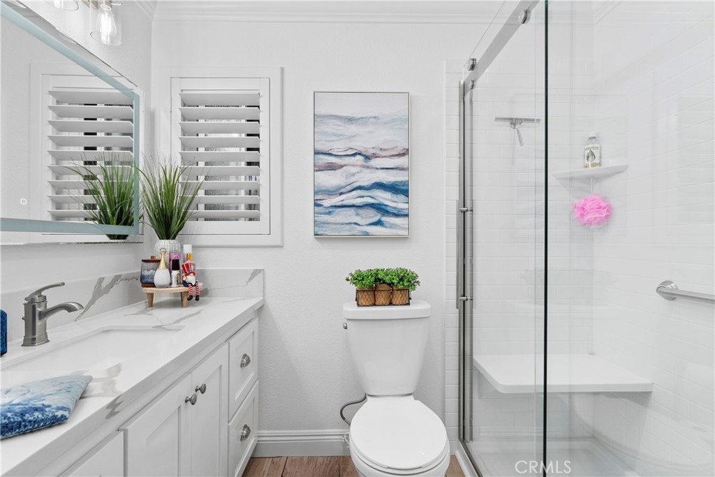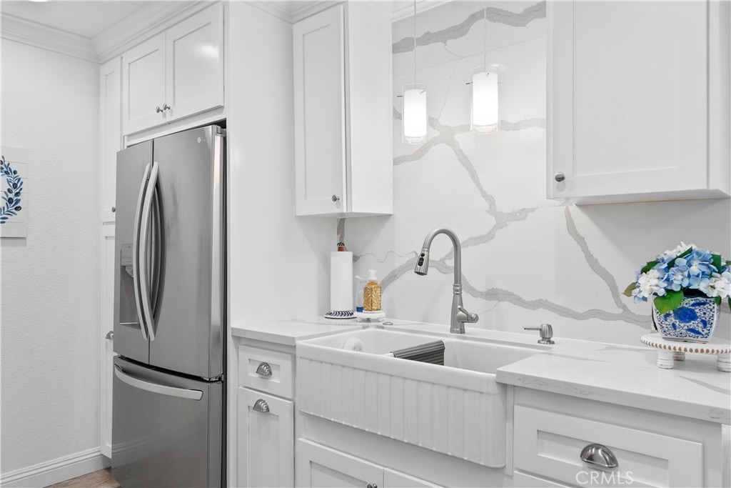 This completely renovated 1-bedroom condo in the Cabrillo Park Complex, Santa Ana, exemplifies modern living with a focus on functionality and style. Every inch of this unit has been meticulously designed to maximize space and comfort. The kitchen boasts custom cabinetry, designed to provide ample storage and work space. The living room is designed for comfort and entertainment, featuring a custom entertainment center with plenty of storage for electronics, books, and other personal items. The closets have been tailored to offer optimal organization and accessibility. An additional interior patio extends from the kitchen, offering extra space that can be used for dining, relaxation, or entertaining. This unique feature enhances the overall living area and provides versatility. Durable and easy-to-maintain tile flooring is installed throughout the unit, adding a cohesive and stylish look to the entire space. The bathroom has been fully updated with contemporary fixtures and finishes, creating a spa-like retreat within your home. The main exterior patio is generously sized, perfect for hosting guests or enjoying a quiet evening with a view of the complex’s serene spa area. Located in the vibrant city of Santa Ana, the Cabrillo Park Complex offers a blend of tranquility and convenience. Residents enjoy access to community amenities such as pools, spas, and landscaped common areas, making it an ideal place to call home. This condo is perfect for those seeking a stylish, low-maintenance lifestyle in a prime location. Don't miss the opportunity to own a beautifully renovated unit with unique features designed for modern living.
