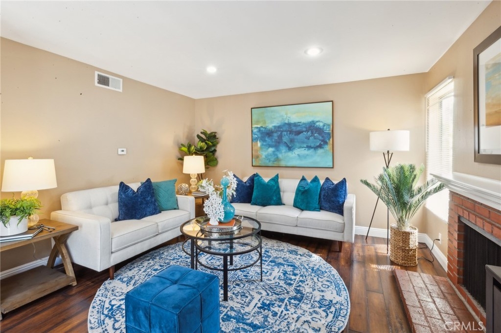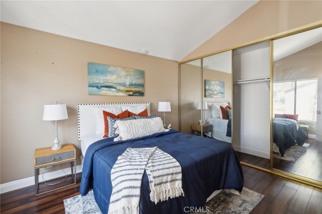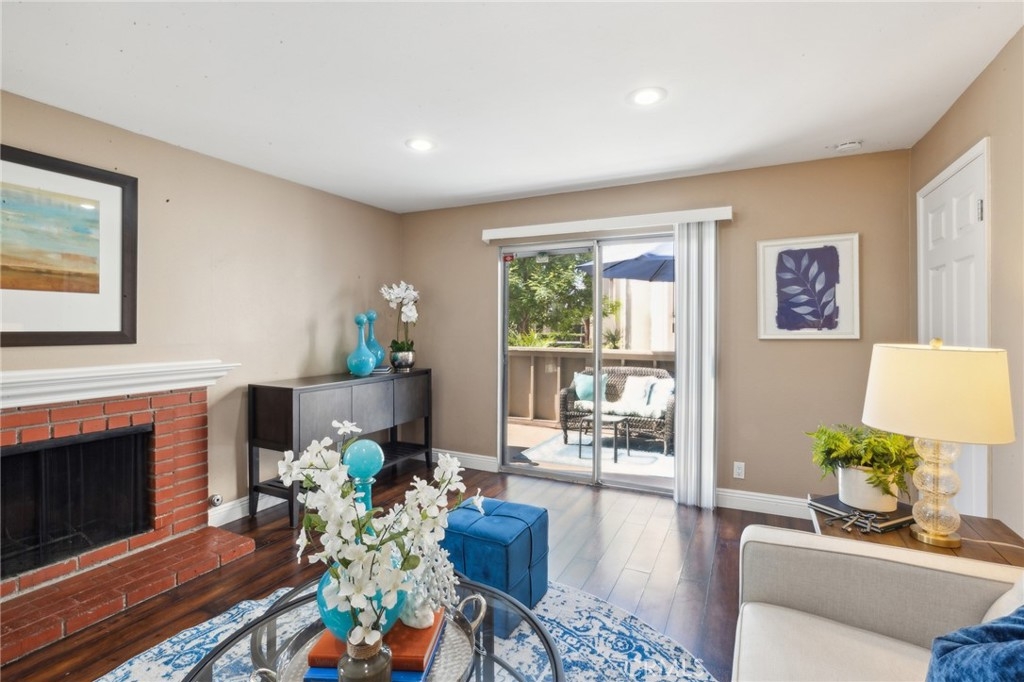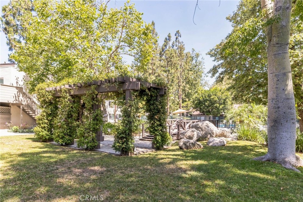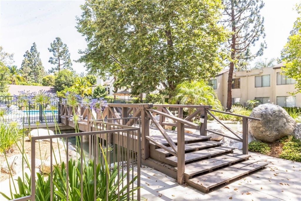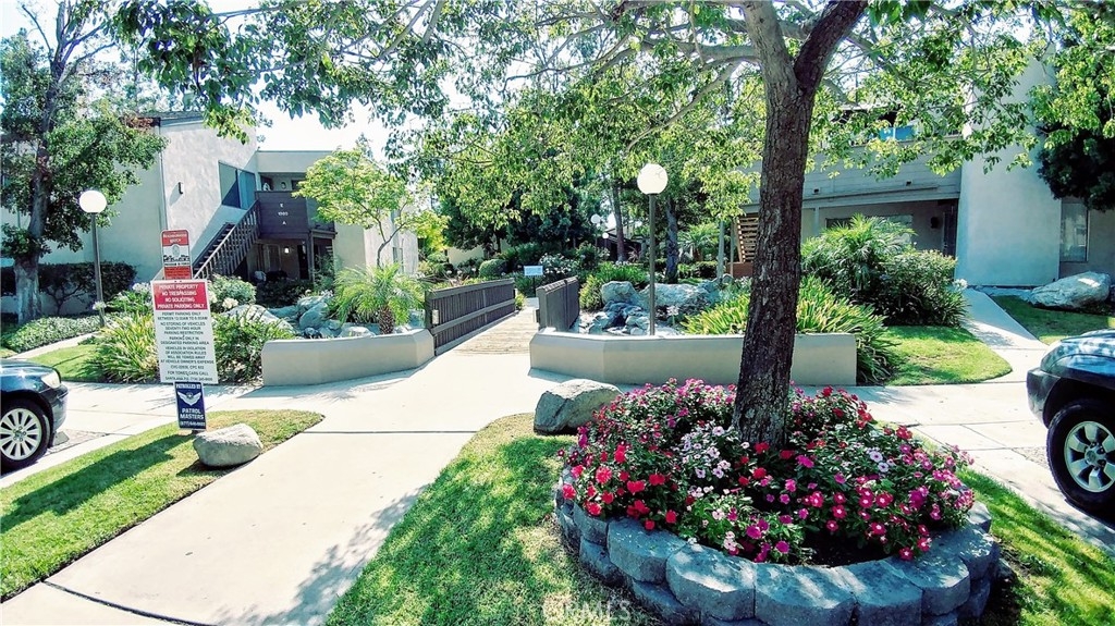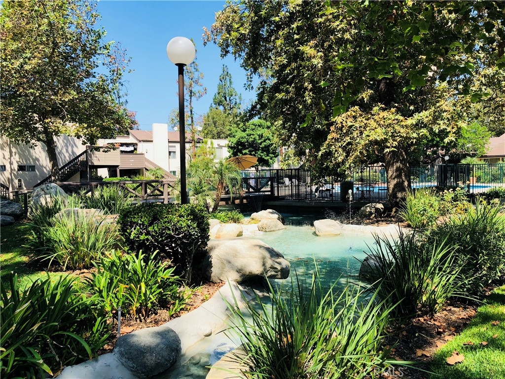 2 Bedrooms plus a huge bonus room! Experience life in one of Southern California's most picturesque garden communities, where tranquil streams and lush gardens create an idyllic setting. This upgraded home offers luxurious features, including granite countertops, cherry wood cabinets, vaulted ceilings, and two beautiful patios. The highlight is the incredible great room, which can function as a spacious primary living area or be utilized as an additional bedroom with a fireplace and its patio. Perfectly situated on a corner, this home provides privacy and ample sunlight. The townhouse layout includes two upstairs bedrooms with vaulted ceilings. Convenience is enhanced with a private parking space directly below the home and an additional parking pass available through the HOA for access to adjacent lots. Residents can indulge in community amenities such as pools, hot tubs, and meeting spaces, enhancing the quality of life in this serene community. The condominium features an assigned covered parking space with storage cabinets. The Cabrillo Condominiums HOA covers water, trash, and gas. The complex is meticulously maintained and boasts numerous water streams, diverse plant species, and mature trees that offer ample shade and attract various bird species. Nearby Cabrillo Park offers extensive green space, a baseball field, a basketball court, and an outdoor fitness court. Mabury Park, a tranquil area with winding paths under mature pine trees, is perfect for leisurely walks and pet strolls. This property falls within the Tustin School District boundaries; buyers should verify this information independently. Few places offer the peace and tranquility found in this distinctive community, where every day feels like a retreat into natural beauty and comfort.