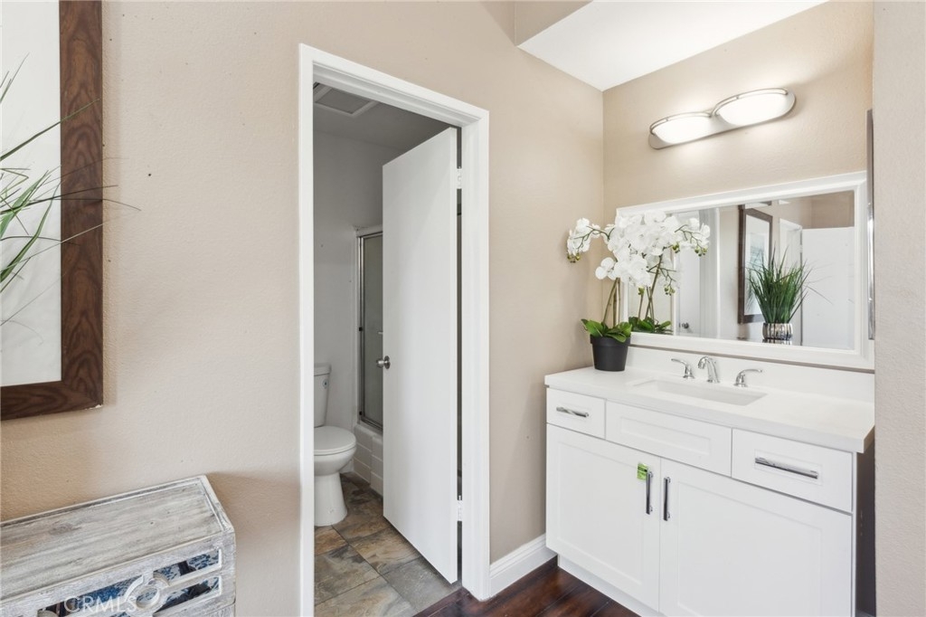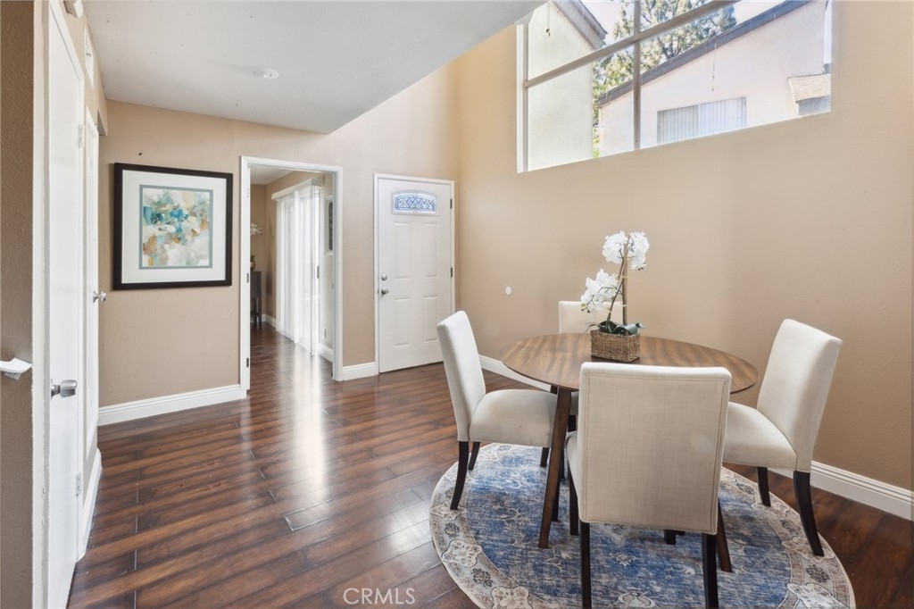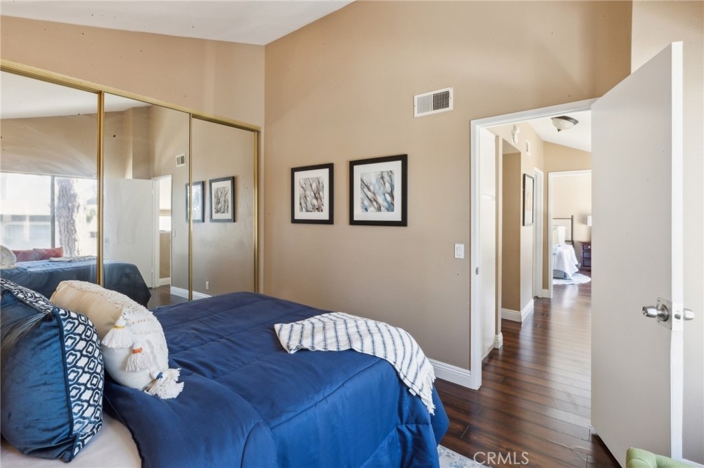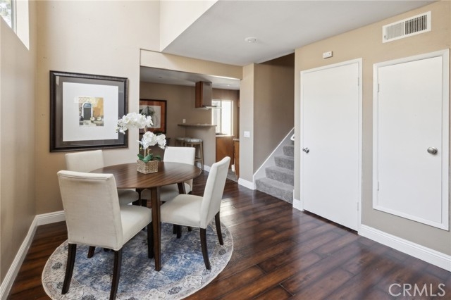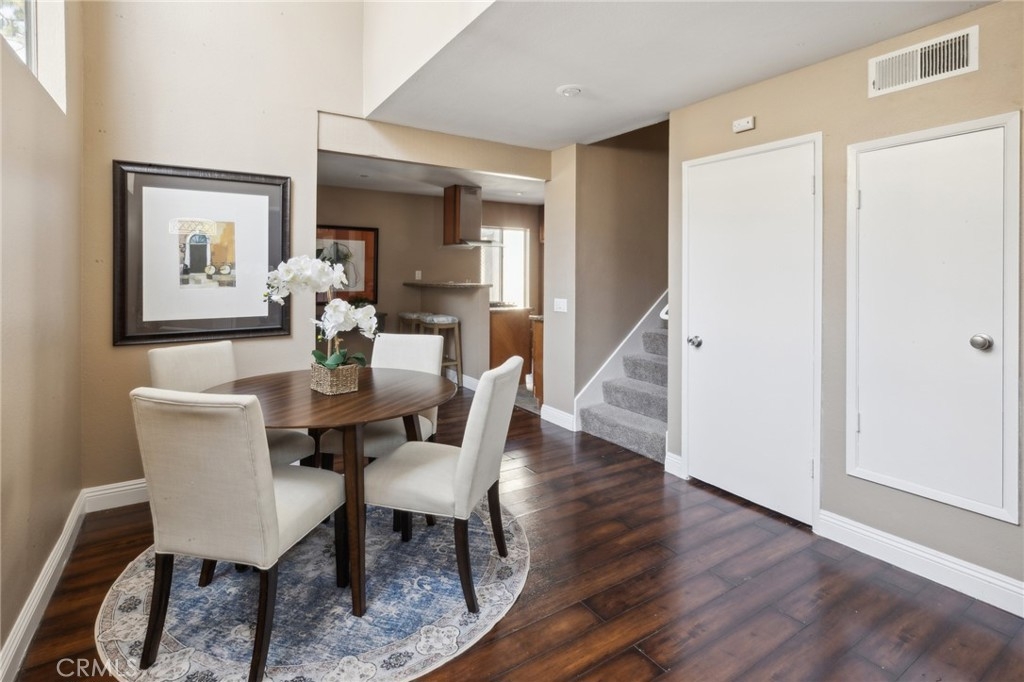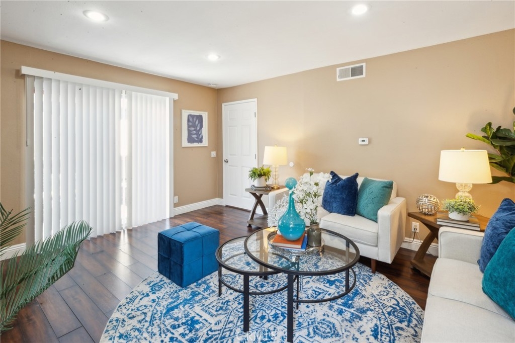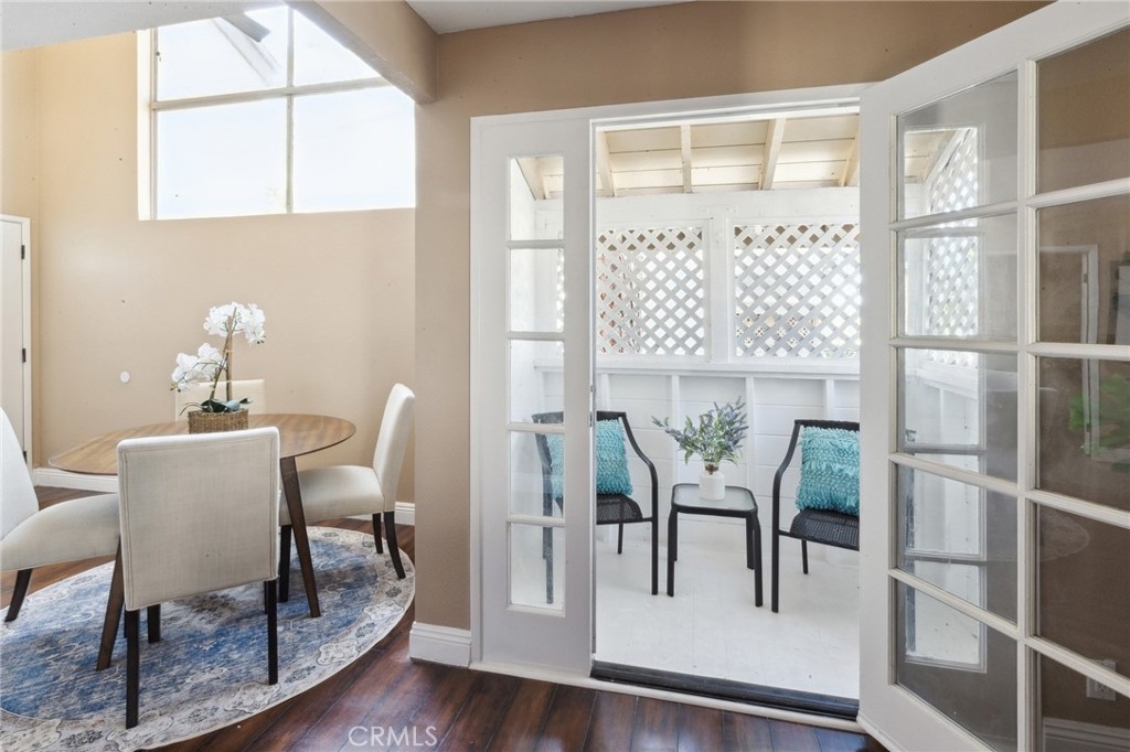 2 Bedrooms plus a huge bonus room! Experience life in one of Southern California's most picturesque garden communities, where tranquil streams and lush gardens create an idyllic setting. This upgraded home offers luxurious features, including granite countertops, cherry wood cabinets, vaulted ceilings, and two beautiful patios. The highlight is the incredible great room, which can function as a spacious primary living area or be utilized as an additional bedroom with a fireplace and its patio. Perfectly situated on a corner, this home provides privacy and ample sunlight. The townhouse layout includes two upstairs bedrooms with vaulted ceilings. Convenience is enhanced with a private parking space directly below the home and an additional parking pass available through the HOA for access to adjacent lots. Residents can indulge in community amenities such as pools, hot tubs, and meeting spaces, enhancing the quality of life in this serene community. The condominium features an assigned covered parking space with storage cabinets. The Cabrillo Condominiums HOA covers water, trash, and gas. The complex is meticulously maintained and boasts numerous water streams, diverse plant species, and mature trees that offer ample shade and attract various bird species. Nearby Cabrillo Park offers extensive green space, a baseball field, a basketball court, and an outdoor fitness court. Mabury Park, a tranquil area with winding paths under mature pine trees, is perfect for leisurely walks and pet strolls. This property falls within the Tustin School District boundaries; buyers should verify this information independently. Few places offer the peace and tranquility found in this distinctive community, where every day feels like a retreat into natural beauty and comfort.