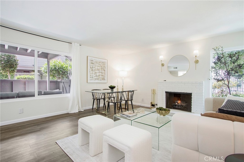 Welcome Home! Nestled in the meticulously maintained Cabrillo Park Townhomes, this 1-bedroom, 1-bathroom gem has been fully renovated inside and out. The new outdoor wood fence and gate ensure privacy for the open patio, while the spacious exterior storage area provides ample room for your belongings. Inside, you'll be captivated by the bright white kitchen, featuring gleaming new quartz countertops and new vinyl flooring throughout. Freshly painted walls and a cozy gas fireplace add to the charm. Abundant natural light floods every corner through new dual-pane windows. The hallway offers additional counter space and storage, complemented by a newer HVAC unit with a brand new Nest system, allowing you to control your home's temperature from anywhere. The renovated bathroom boasts a new shower/tub unit with rain shower fixtures, stylish floor tile, and a white quartz countertop. The bedroom is a serene retreat with a new ceiling fan and dual-pane windows that invite in natural light. This property is ideally located, just steps to the the pool, recreation area, and laundry facilities. Enjoy numerous HOA amenities, including covered water, trash, sewage, gas, pool, three spas, clubhouse, gym, and two laundry facilities, along with designated carport space and guest parking. Conveniently situated near freeways, shopping, restaurants, parks, and Disneyland, this home is also within the award-winning Tustin school district. Don't wait any longer—make this your home today!