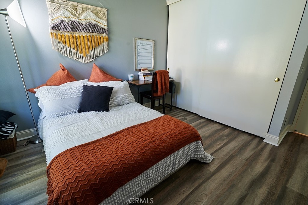 Welcome home! Upper Corner unit in the Cabrillo Park Community Complex in Santa Ana on the border of Tustin. The complex has water streams running throughout; surrounded by mature trees, and lush greenbelts. Pet-friendly complex, 1 community pool with two jacuzzis, gym, and 2 laundry facilities. The property is within the boundaries of the Award-winning TUSTIN School district. The current owner had the property remodeled with new flooring, new HVAC, paint, kitchen cabinets, quartz countertops, backsplashes, new sink, new kitchen appliances, new bathroom cabinets, granite countertops with new vanities, sinks and fixtures in both bathrooms. The large master suite comes with a custom barn door that enters into a large closet space and the master bathroom. A fireplace in the living room with a high ceiling is very inviting for you and your loved ones. A private patio with a storage unit allows you to enjoy your time outside without clutter. Vinyl windows will keep your home more energy-efficient. 1 assigned carport, plus one additional space. Close to shopping centers, Cabrillo Park, and 55 and 22 freeways. The property is FHA approved.