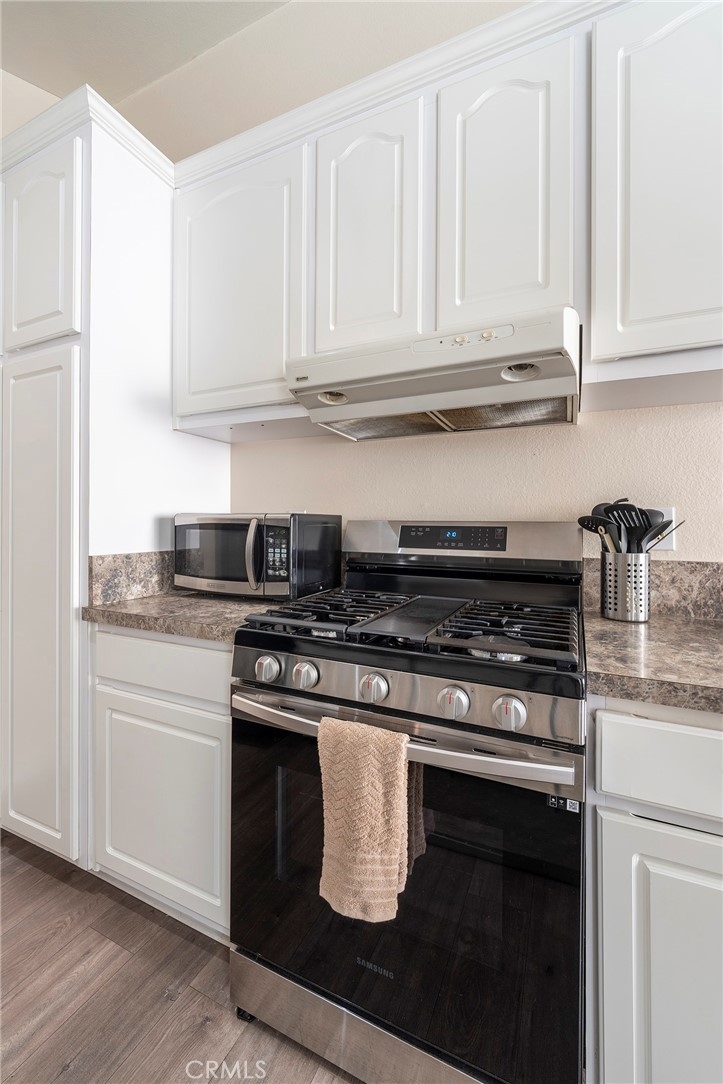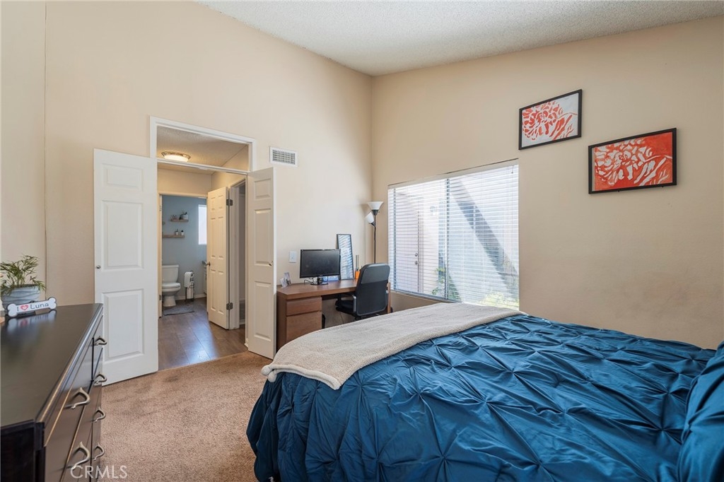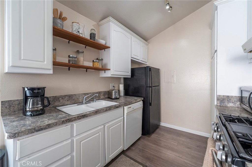 Welcome home to this luminous condominium nestled in the highly sought-after Cabrillo Park community. This is the perfect starter home located on the uppermost level with no neighbors above and is ideally situated toward the rear and interior of the complex, providing convenient access to parking and laundry facilities. The residence boasts two enclosed patios, perfect for those with furry companions, as well as spacious mirrored closet doors, vaulted ceilings, a newer kitchen stove, newly installed recessed lighting in the living area, and a fresh front door. The home is adorned with contemporary wood laminate flooring throughout. You'll relish the proximity to parks and shopping within easy walking distance. The community itself offers a splendid pool, a rejuvenating spa, and a fully-equipped gym. Notably, the HOA dues have just been increased to $374 to accommodate a brand new roofing project for the entire complex. Furthermore, the HOA covers essential utilities such as water, gas, and trash. Two parking spots are included: one carport parking space #480 and one open parking spot throughout the complex (with a parking permit sticker).