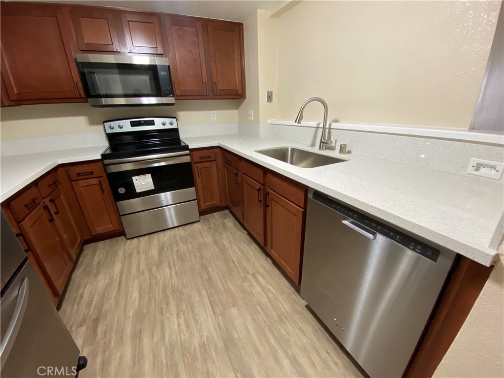 This nicely remodeled 2 bed 2 bath with an added bonus room is perfect for a first time buyer or investor looking to be near the heart of the City of Santa. This property offers over a 1000 living Sqft., Spacious floor plan and a laundry room with washer and dryer already included which is rare to have in this area. The unit also offers new luxury vinyl plank floors through out, fresh paint, new kitchen cabinets, quartz counter tops, appliance, new bedroom sliding doors which offers a shared balcony with lots of natural lighting. The community offers offers plenty of guest parking, pool, elevator access from lower parking area and much more. Location is walking to distance to the continuously developing Down Town Santa Ana Historic District, Shopping, Dinning, Schools, and Parks. This condo is a must see to really appreciate all the great things it has to offers along with its surroundings