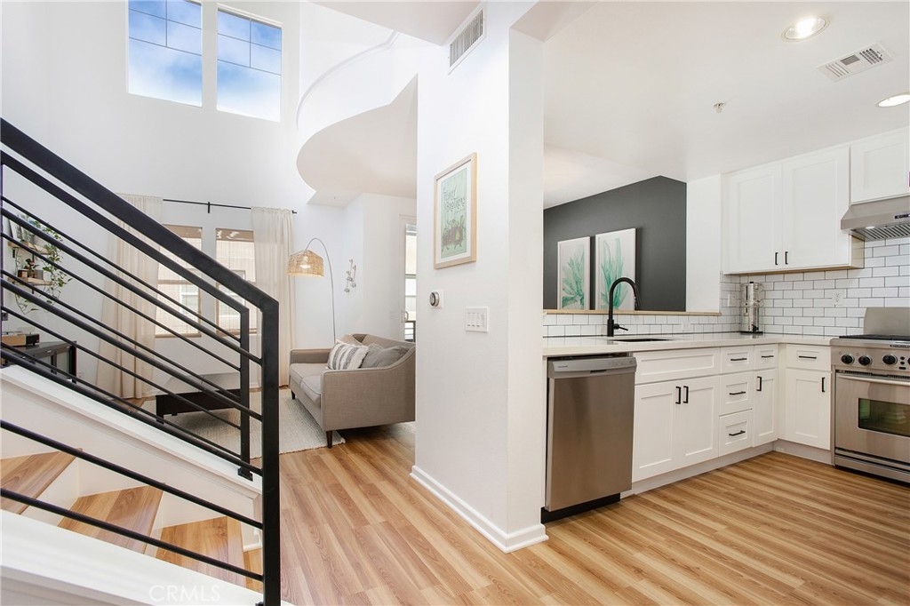 Experience the best of urban living in this beautifully designed townhome located in the vibrant "Park at City Place" community. Step inside and be welcomed by an open-concept layout with soaring ceilings, sleek hardwood floors, and abundant natural light. The spacious living area seamlessly flows into a gourmet kitchen, equipped with premium stainless steel appliances, a subway tile backsplash, custom cabinetry, and an expansive countertop—ideal for both entertaining and everyday culinary adventures. This thoughtfully designed home offers two well-sized bedrooms, a flexible loft/den space perfect for a home office or creative studio, and 2.5 stylish bathrooms. The primary suite is a true retreat, featuring a generous walk-in closet and a luxurious en-suite bathroom with stone countertops and a custom-tiled shower. The additional bathrooms showcase modern vanities and tasteful tile work, adding to the home’s contemporary appeal. Additional features include a direct-access two-car tandem garage and an in-unit laundry area for ultimate convenience. Enjoy a private patio just off the main living space, perfect for relaxing outdoors or dining al fresco. Situated in a prime location, this townhome puts you steps away from top-rated dining, shopping, and entertainment, including Main Place Mall, Mother’s Market, 24 Hour Fitness, and Santiago Park. Centrally positioned in Orange County, this property is minutes from Old Towne Orange, St. Joseph Hospital, CHOC, Bowers Museum, Chapman University, and the Discovery Science Center. Quick access to the 5, 55, and 22 freeways ensures an easy commute to all your destinations. Don’t miss your chance to own a modern, stylish townhome in one of Santa Ana’s most desirable locations. Schedule a viewing today and see for yourself!