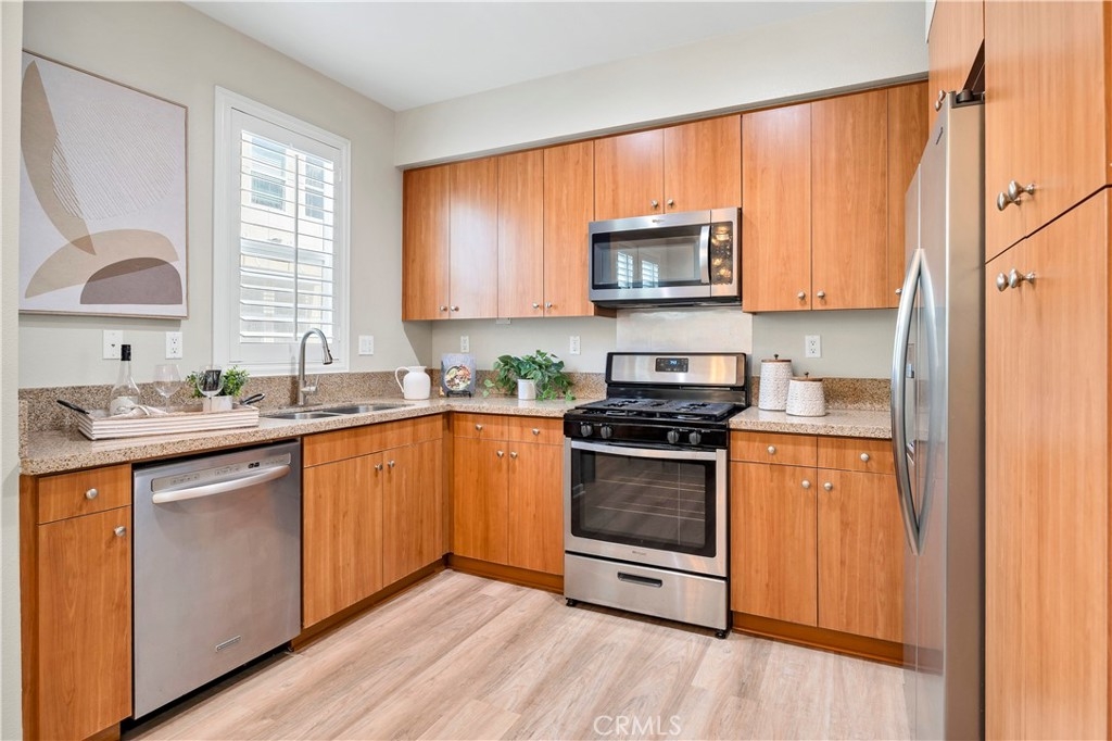 Discover the perfect blend of comfort, style, and convenience in this stunning multilevel townhouse located in the heart of one of Orange County's most vibrant communities. This expansive 3-bedroom, 2.5-bathroom residence features a versatile bonus 4th room with a closet—ideal as a bedroom, home office, guest space, or playroom—and boasts a generous 2,185 sq ft floor plan with 2 car attached garage, making it one of the largest in the area. Newly upgraded with beautiful LVP flooring and fresh paint, this home is ready for you to move in and make it your own! As you step inside, you’re greeted by an inviting formal living space adorned with a cozy gas fireplace, seamlessly flowing into the open living and dining areas—a perfect setting for entertaining family and friends. The modern kitchen is a chef's dream, showcasing granite countertops, stainless steel appliances, and ample storage, all while being perfectly situated to allow for easy conversations with guests in the dining room. A conveniently located half bath rounds out this level, making gatherings a breeze. Venture to the third floor where you’ll find two generously sized bedrooms and Bonus Room. A spacious laundry room and a stylish bathroom complete this level, featuring dual sinks for added convenience. Retreat to the fourth floor where the luxurious master suite awaits, featuring a large walk-in closet and a bright, airy bedroom. The en-suite bathroom is a true sanctuary, complete with a soothing soaker tub and a separate shower—perfect for unwinding after a long day. City Place is not just a home; it’s a lifestyle. Enjoy beautifully landscaped areas, and take advantage of the proximity to Santiago Park, Chapman University, Old Town Orange, popular dining spots like Mother's Market, Habit Burger Grill, and The Olive Garden, as well as your favorite coffee shop, Coffee Bean. With easy access to major highways (I-5, 57, and 22) and just a short drive from the revitalized Downtown Santa Ana, this location offers the perfect balance of tranquility and urban excitement. Low Taxes & the monthly HOA fee covers trash and water.