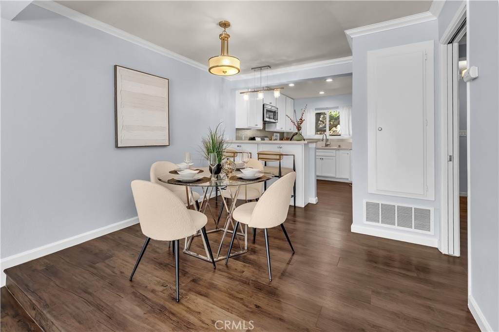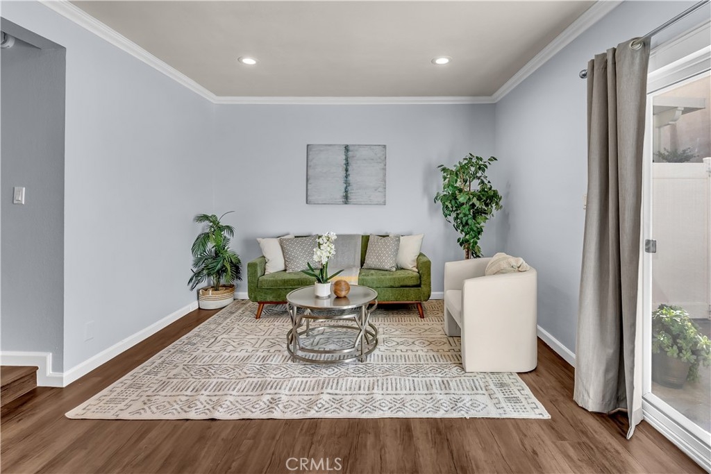 Beautifully remodeled and upgraded 2 bedroom, 2 bath, condo nestled in a peaceful complex with lush landscaping in northeast Santa Ana. Enjoy easy access to shopping, dining, freeways and schools in the Tustin School District. Also just minutes from Old Towne Orange, Downtown Santa Ana, and Main Place Mall. Welcome home to this stunning, move-in ready, two-story unit offering the perfect blend of modern style and comfort. The updated kitchen boasts quartz countertops, white shaker cabinets, and stainless steel appliances. Enjoy a nice breakfast bar with plenty of under-counter storage and separate dining area ideal for family meals. Step-down to find a bright and open living room with recessed lighting and sliding glass doors that lead to a nice sized private patio, perfect for your morning coffee. The entire first level features luxury vinyl, water-resistant flooring and brand new carpeting upstairs. Both bathrooms have been tastefully remodeled with contemporary fixtures and tile work. Upstairs the bedrooms offer ample natural light, generous closet space and the primary bedroom offers a peaceful, tree lined view of the green area. Also, conveniently located upstairs is a stackable washer and dryer. The entire home received a fresh coat of paint and been upgraded with central air conditioning for those hot summer California days! This is the perfect turnkey home you’ve been waiting for – move right in and start living your best life!