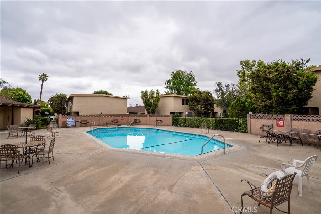 Charming and spacious, this 2 bedroom, 2 bathroom condo sits on ground level with an open floor plan, perfect for entertaining. This home boats a family kitchen that opens to a large dining room and living room. Enjoy entertaining on the fenced in, outdoor patio with space to BBQ and dine. This also features a detached garage. Located near freeways, parks, grocery stores and restaurants, as well as access to the community's large pool. The opportunities are endless! Fantastic Tustin Unified School District