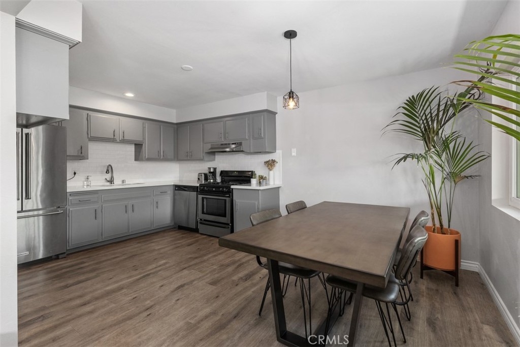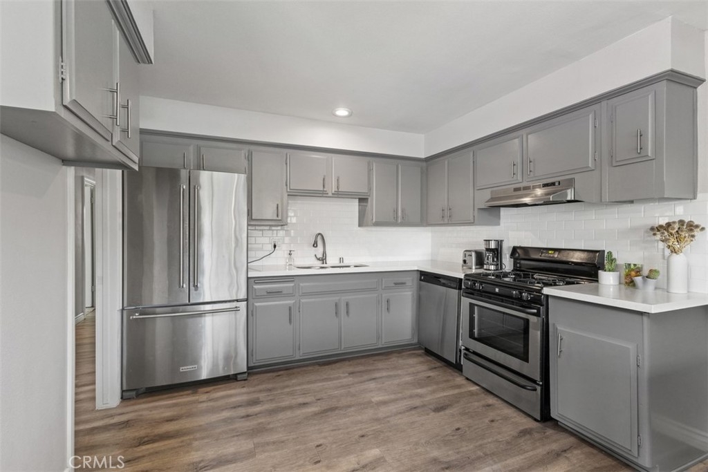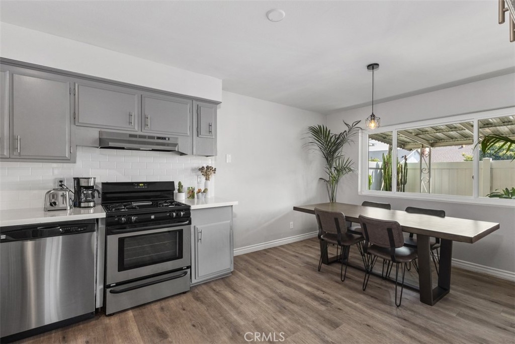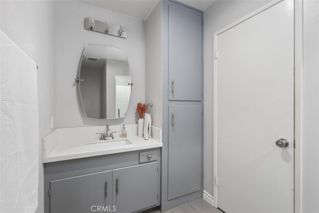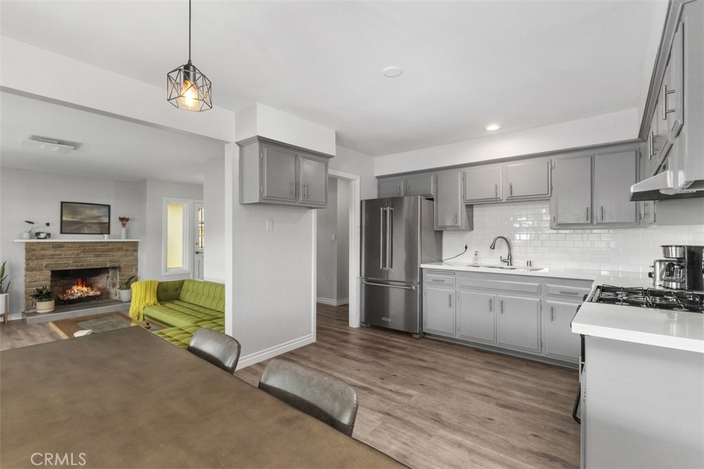 Timeless Style & Comfort in this Well-Maintained Condo! Welcome to this charming single-story home in the sought-after Hillview Regency neighborhood, ideally located on the Tustin/North Santa Ana border and served by the Award-Winning Tustin Unified School District. This 3-bedroom, 2-bathroom condo continues to impress with its open-concept layout and thoughtfully curated updates. The spacious kitchen features stainless steel appliances, quartz countertops, a subway tile backsplash, and a deep under-mount sink with modern fixtures. The adjacent dining area and sunken living room with a cozy gas fireplace create the perfect space for relaxing or entertaining. Step outside to the private vinyl-fenced patio, ideal for summer BBQs or a quiet evening breeze. The primary bedroom offers ample closet space and an ensuite bathroom with quartz countertops, updated tile flooring, stylish vanity lighting, a custom glass shower door, and built-in storage. The third bedroom remains a flexible space it's perfect as a home office, playroom, or additional lounge area and is complete with built-in cabinetry and shutters. Additional features include dual-pane windows, updated flooring, in-unit laundry, and newer AC & furnace. The community boasts lush landscaping, manicured greenbelts, a clubhouse, and a pool that's perfect for enjoying warm California days. HOA covers water and trash for added convenience. Located minutes from shopping, dining, and entertainment. Don’t miss your chance to own a piece of comfort and convenience in a well-loved neighborhood.