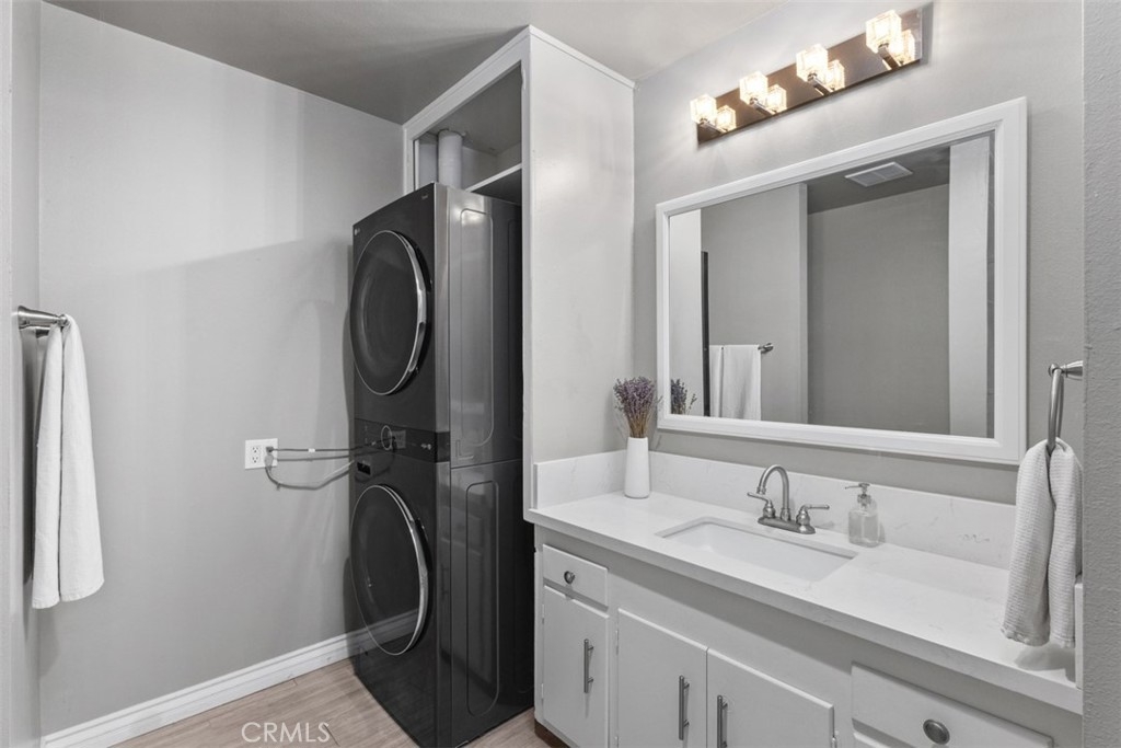 Timeless Style & Comfort in this Well-Maintained Condo! Welcome to this charming single-story home in the sought-after Hillview Regency neighborhood, ideally located on the Tustin/North Santa Ana border and served by the Award-Winning Tustin Unified School District. This 3-bedroom, 2-bathroom condo continues to impress with its open-concept layout and thoughtfully curated updates. The spacious kitchen features stainless steel appliances, quartz countertops, a subway tile backsplash, and a deep under-mount sink with modern fixtures. The adjacent dining area and sunken living room with a cozy gas fireplace create the perfect space for relaxing or entertaining. Step outside to the private vinyl-fenced patio, ideal for summer BBQs or a quiet evening breeze. The primary bedroom offers ample closet space and an ensuite bathroom with quartz countertops, updated tile flooring, stylish vanity lighting, a custom glass shower door, and built-in storage. The third bedroom remains a flexible space it's perfect as a home office, playroom, or additional lounge area and is complete with built-in cabinetry and shutters. Additional features include dual-pane windows, updated flooring, in-unit laundry, and newer AC & furnace. The community boasts lush landscaping, manicured greenbelts, a clubhouse, and a pool that's perfect for enjoying warm California days. HOA covers water and trash for added convenience. Located minutes from shopping, dining, and entertainment. Don’t miss your chance to own a piece of comfort and convenience in a well-loved neighborhood.