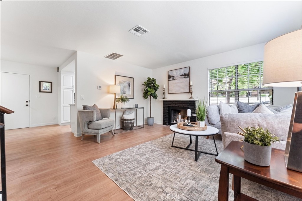 Welcome home to this beautifully updated end-unit townhome, offering a bright and airy living space with fresh interior paint throughout. Step inside to discover brand-new plank laminate flooring on the main level and plush new carpeting upstairs, complemented by new modern window blinds. The inviting living room features a cozy fireplace—perfect for relaxing or entertaining—and flows seamlessly into the adjacent dining area. Just steps away, the remodeled kitchen is a chef’s delight, showcasing new quartz countertops, recessed lighting, updated cabinetry, and a gas range. The attached two-car garage includes convenient interior access, laundry hookups, a new garage door opener, and additional storage space. Upstairs, the spacious primary bedroom offers a large walk-in closet and a serene en-suite bathroom designed for comfort and relaxation. Enjoy your own private outdoor courtyard—ideal for unwinding or entertaining guests. Additional upgrades include a brand-new central furnace for year-round comfort. The HOA covers water and trash services for added convenience. Perfectly located near Edna Park, Riverview West Park and Golf Course, Santa Ana College, shopping centers, grocery stores, and scenic bike trails along the Santa Ana River Trail, which leads to the beach. Commuters will appreciate easy access to both the 22 and 5 freeways. This move-in-ready home offers the ideal blend of comfort, style, and convenience. Don’t miss the opportunity to make it yours!