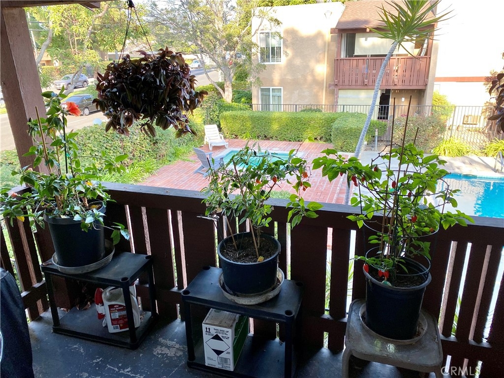 Private and secluded top floor, end unit with two balconies, one in the front and one in back! Nobody above or in front, looks like you have your own front yard! The front private balcony enjoys nice evening shade from beautiful, large mature trees and the rear balcony overlooks the pool and spa area. This nicely maintained unit features: Updated kitchen with stainless steel appliances and a dishwasher. Updated windows throughout and sliding door, 3 ceiling fans and updated electric box. Recently painted, the unit feels larger than the listed square footage. The long list of HOA amenities and services include; Gated entrance with 24 hour security, various community pools, spas, tennis courts, basketball court, volleyball court, gym and clubhouse. All within Walking distance to South Coast Plaza, theaters and fine dinning!