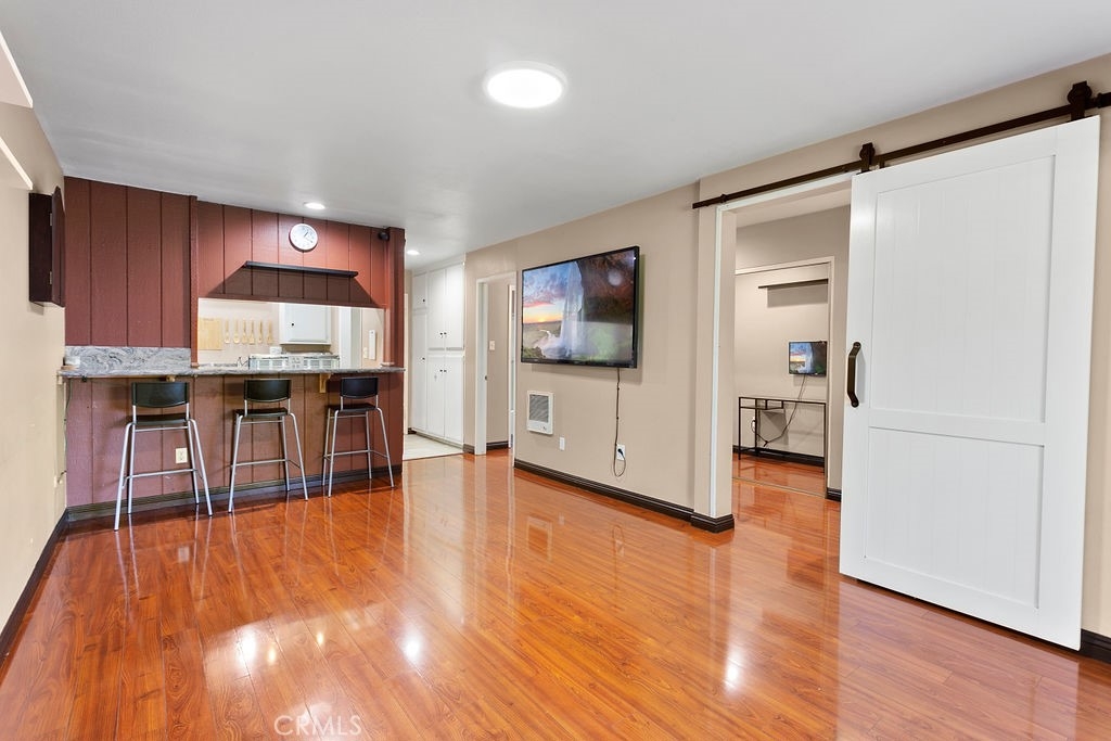 Act now, because this lovely, updated, lower end-unit Jr. 1-bedroom condo will move fast! This gem of a condo features laminate floors, recessed lights, smooth ceilings, and a lovely bedroom barn door, which are all amenities you don’t have to purchase yourself. In fact, you can move right in and immediately begin showing off your place to your friends and family. Plus it's in the coveted community of MacArthur Village, which is guard-gated and walking distance from South Coast Plaza! You’ll also enjoy the unit’s great location within MacArthur Village, as well as its large patio, where you can relax on a summer day. MacArthur Village is a guard-gated community, which is rare for this price range, and it features three pools, five spas, four lit tennis courts, a gym, basketball court, and a volleyball court, which means you have entertainment right at your doorstop. The community is located in South Coast Metro, Orange County’s business and cultural center, featuring world-class dining, shopping and entertainment. You are right in the thick of world-famous attractions, including South Coast Plaza, the Segerstrom Center for the Arts, and the Tony-winning South Coast Repertory. The community also offers easy access to the 405, 55, 73, and 5 freeways. Indeed, when you live in South Coast Metro, all of Orange County’s attractions, including Disneyland and world-famous beaches, are only a short drive away. Don’t miss out on this great buy!