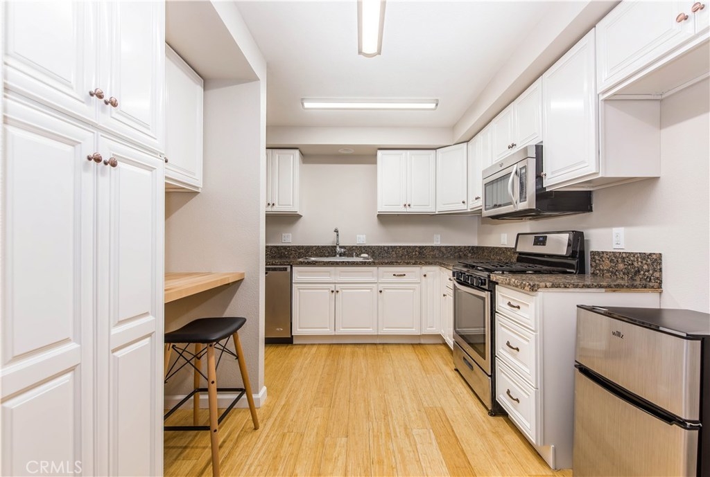 Welcome to Your New Home! 1250 Cabrillo Park, Unit A! This Lovely LOWER LEVEL, 1 STORY Condo in Cabrillo Park Won't Last Long! NEWLY REMODELED 1 Bedroom, 1 Bathroom. This Home Has Been Nicely Upgraded w/Bamboo Wood Laminate Flooring Throughout, Freshly Painted, Newer Baseboards, Newer Windows Throughout & Wood Blinds. The Kitchen Was Re-Designed & Expanded For a More Open Feel, Featuring Granite Counters, New White Raised Panel Cabinets w/a Pantry & Butcher Block Planning Desk, Lazy Susan Corner Cabinet, Oversized Stainless Steel Sink, Newer Whirlpool Stainless Steel Appliances Including a Freestanding 5 Burner Gas Stove, Space Saver Microwave & Dishwasher. The Large Living Rm Has a Brick Fireplace w/Ceramic Gas Logs & Ceiling Fan. Large Master Bedroom w/Ceiling Fan & Storage Unit in the Closet. The Spacious Bathroom Features a Hanging Rack that Can Be Enclosed For a Second Closet, New Wood Look Tile Flooring, a White Vanity w/Granite Counters, New Light Fixture, Freestanding Linen Cabinet & Walk-In Shower w/Handicap Rails. The Front Enty Offers a Covered & Enclosed Courtyard Patio w/Storage Closet. This Unit is Just Steps To the Newer Laundry Facility (digital card system), Pool, 3 Spa's, Gym & Club House. Located In The Award-Winning Tustin School District, Foothill High School, Guin Foss Elementary & Columbus Tustin Middle. Minutes to Shopping, Restaurants, Parks, Entertainment & Freeways. GAS/WATER/TRASH INCLUDED IN HOA DUES. Lots of Parking Around the Community.