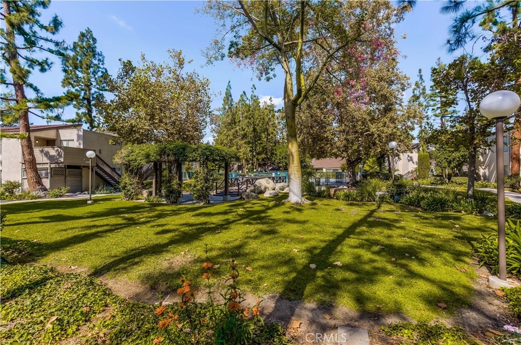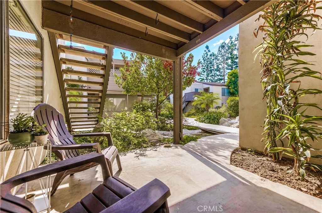Super cute and cozy home with a babbling brook in the front yard. Lush landscaped community meanders to central pool. spas, newer gym, and clubhouse. A lower unit with with A/C, this open floor plan allows for plenty of room for you and your guests! Over the bridge and through your relaxing lanai then you're home. Light Bamboo flooring with large windows and Blinds makes this living room warm and bright or private and cozy. Kitchen overlooks the living room with a large counter space and several stools. Gas range. Newer mosaic backsplash behind the kitchen sink. Ceiling fans in the living room and large bedroom. The remodeled bathroom is modern, clean, and very relaxing with stone inlay walls and flooring. Tons of space in the large double door closets. Outside storage closet.