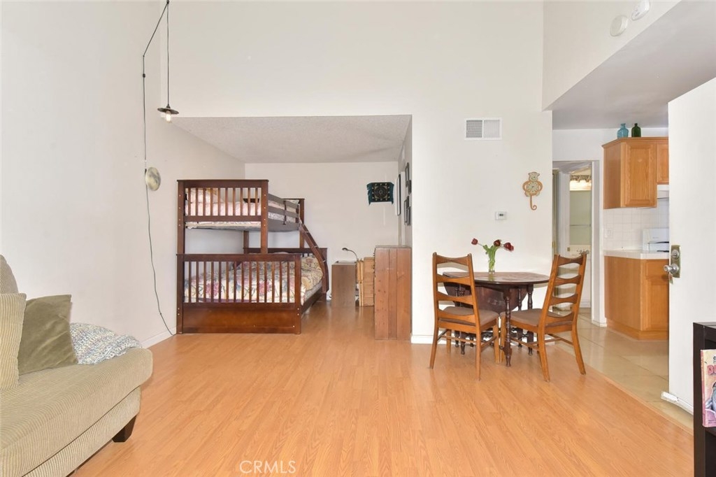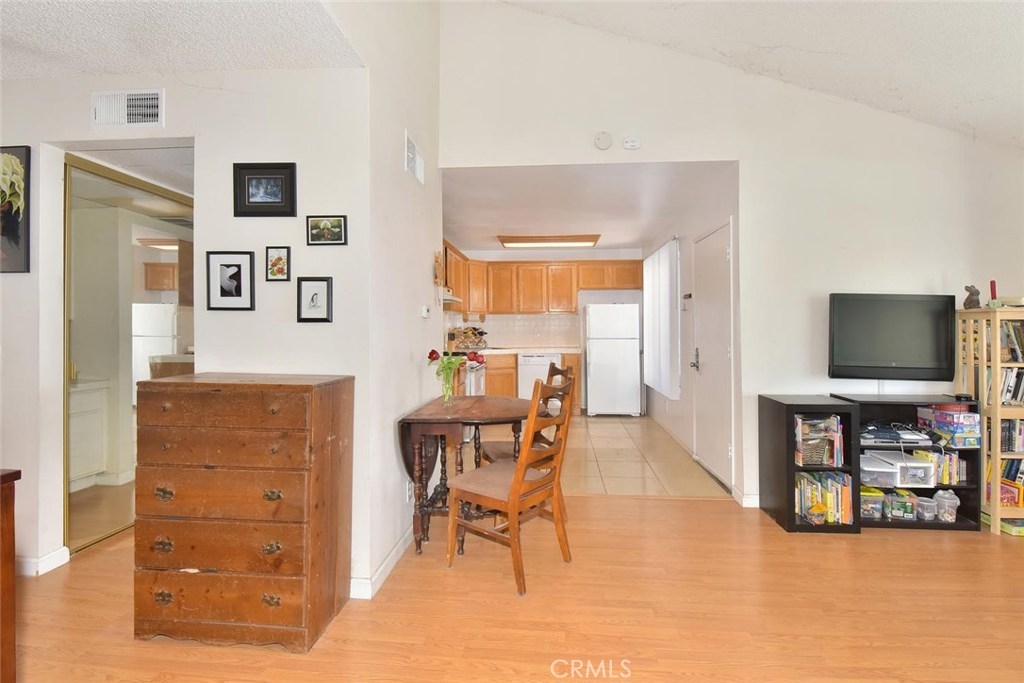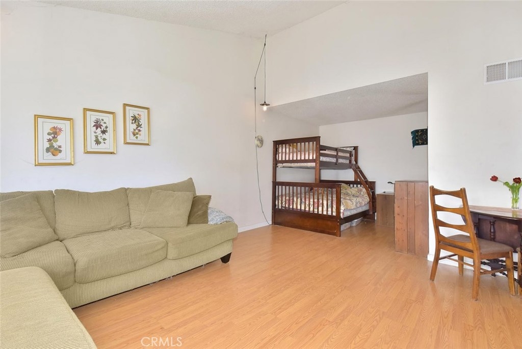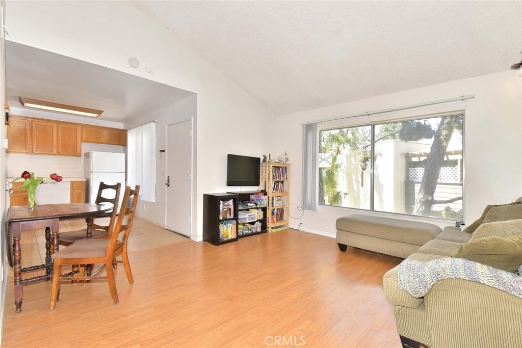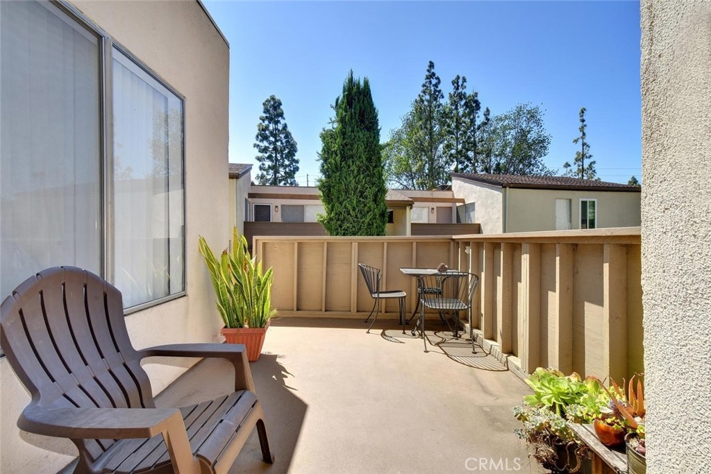 Upper level end unit, with high beamed ceilings, large patio deck, with lots of natural light. Resort style pool, jacuzzi and clubhouse. Unit comes with one carport with storage. Ample guest parking throughout the complex. Easy access to 5,55 & 22 freeways. Shopping and dining within walking distance.