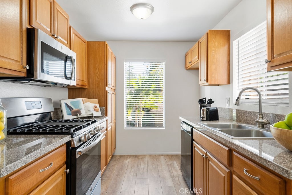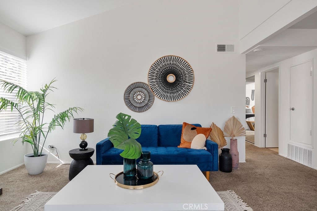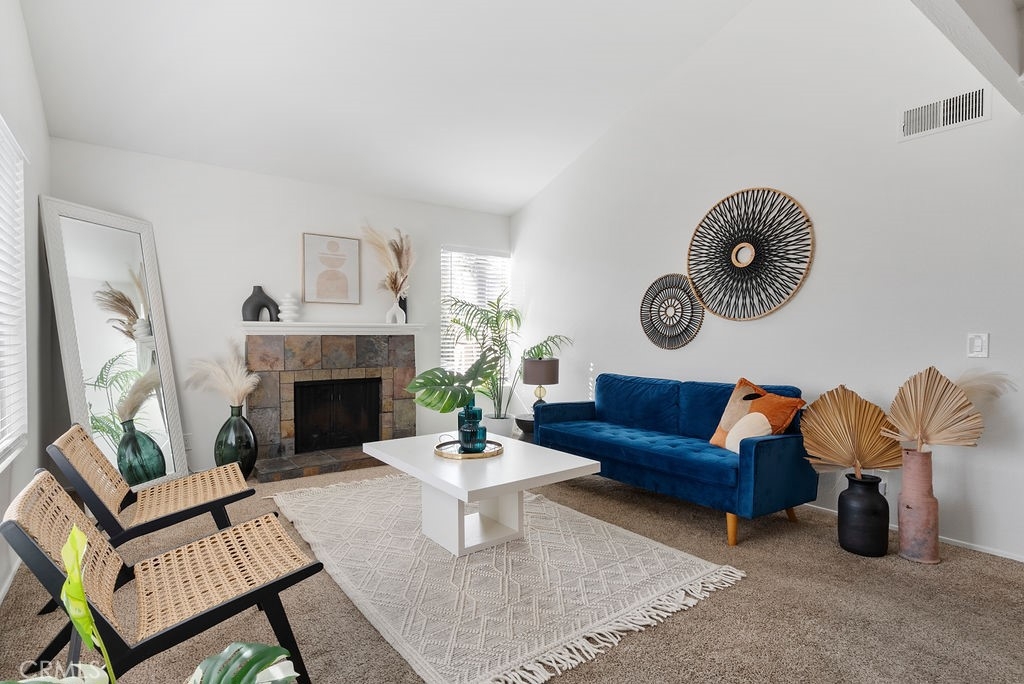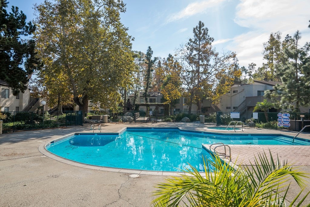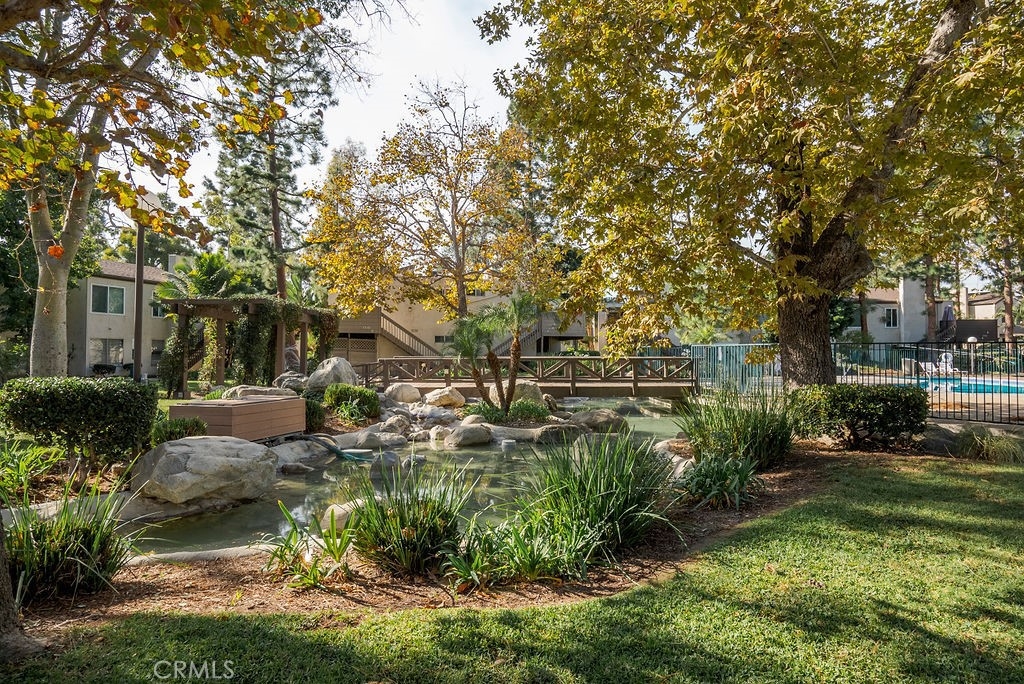 TUSTIN SCHOOLS!!!! Resort-Style Living in Cabrillo Park Townhomes – Beautifully Upgraded Two-Bedroom Discover serene, resort-style living in this beautifully upgraded two-bedroom home located in the peaceful, nature-inspired Cabrillo Park Townhomes community. Surrounded by lush landscaping and tranquil water features, this property offers a retreat from the everyday. Inside, you’ll find laminate wood floors, custom window blinds, and designer colors that elevate the bright, open floor plan. Vaulted ceilings and abundant natural light create an airy atmosphere, highlighting the seamless flow from room to room. The kitchen is both stylish and functional, featuring wood cabinetry, a stove, microwave, and dishwasher, with large windows that bring in views of the lush surroundings. Adjacent is a separate dining area that opens into a spacious living room with a cozy stone fireplace – perfect for relaxing or entertaining. The master suite offers plush carpeting, ample closet space, and a beautifully remodeled en-suite bathroom. The second bedroom is generously sized and conveniently located near the full hall bathroom. Step outside to your private patio, where treetop views and the sounds of nearby water flows create a peaceful setting for morning coffee or evening relaxation. Residents of Cabrillo Park Townhomes enjoy a wide range of amenities, including a huge swimming pool, gym, clubhouse, and serene tree-lined pathways. 1 covered parking assigned, an additional parking tag, and plentiful guest parking add convenience, while the HOA covers gas, water, and trash. Located close to top schools, shopping, and entertainment, this home offers both convenience and tranquility – a rare find in today’s market