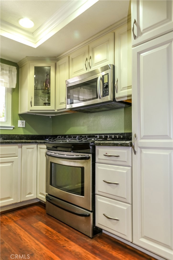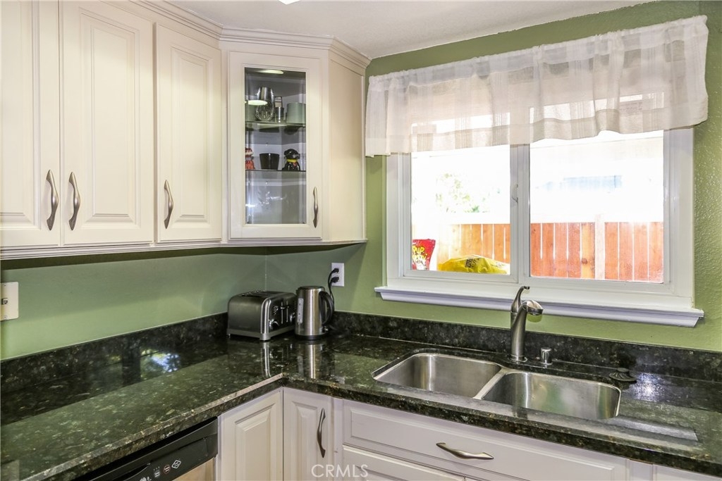 This home features two master suites, each with their own baths, that have been upgraded with laminate wood floors and granite counter tops. Large walk in closets. The kitchen has been upgraded with granite counter tops and newer off white cabinets . The flooring is wood laminate through out the living room . Sliding glass doors lead to a inviting patio surrounded with wall for privacy. It has concrete slab floor for barbecuing and visiting with friends and family. This is a small private, gated community close to shopping, schools and freeway access. This home features central cooling and heating. Show and sell this special .