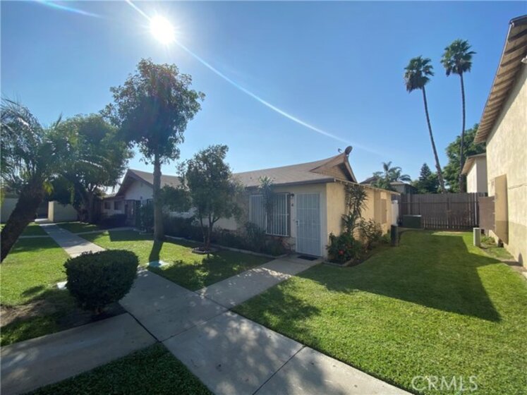 Why Rent When You Can Own? This is a single story end unit with no stairs, This spectacular 1 bedroom and 1 bathroom, has been recently updated and has an enclosed dining room that could be used as an additional bedroom. Unit includes 2 parking spaces (one is carport with storage). The spaces assigned to this unit are conveniently located. Property also has been recently painted, the interior has newer fixtures, newer appliances, and an updated kitchen with quartz countertops. Bathroom has been updated. This unit has a rear enclosed patio with some yard and no unit behind. The Regency Villas is in the process of being updated and offers a gated community with 2 pools and low HOA. This unit has a great parking space near the front gate and office and the carport is near the unit. You will really appreciate the feeling of this cozy unit.