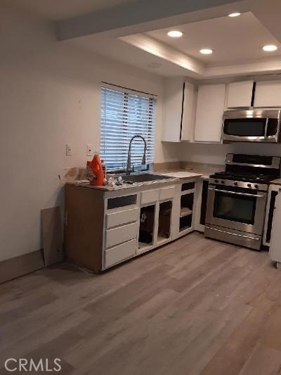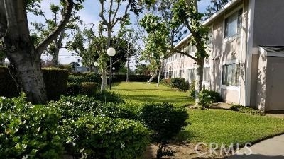 Welcome to Santiago Springs..a quite, gated community. Enjoy community pool, walkways with streams. This lower lever end unit is located towards the front of the community - close to Edinger Ave. Laminate flooring throughout, ceramic tile in bathroom. Interior washer/dryer hookups. Bathroom remodeled 2 years ago. Kitchen in need of new cabinets.
