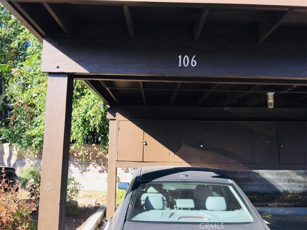 Welcome to the wonderful gated community of Santiago Springs! This ground level end unit is ready for new owner to enjoy. Lots of natural light. Upgraded with laminate, slate style flooring.Ceiling fan in dining area. Kitchen includes free standing gas stove, microwave, dishwasher, refrigerator. Upgraded bathroom -including ceramic, slate style flooring, tiled tub/shower area, new vanity, framed mirror, faucets, lighting. In wall shelving for toiletries.Convenient stackable washer / dryer in hall closet. Good sized bedroom with walk-in closet in. Newer AC unit- Lennox Merit Series, with permanent filter - just wash off with water! New "Nest" thermostat (Wi-Fi enabled, phone app.) Carport # 106 (legal description)