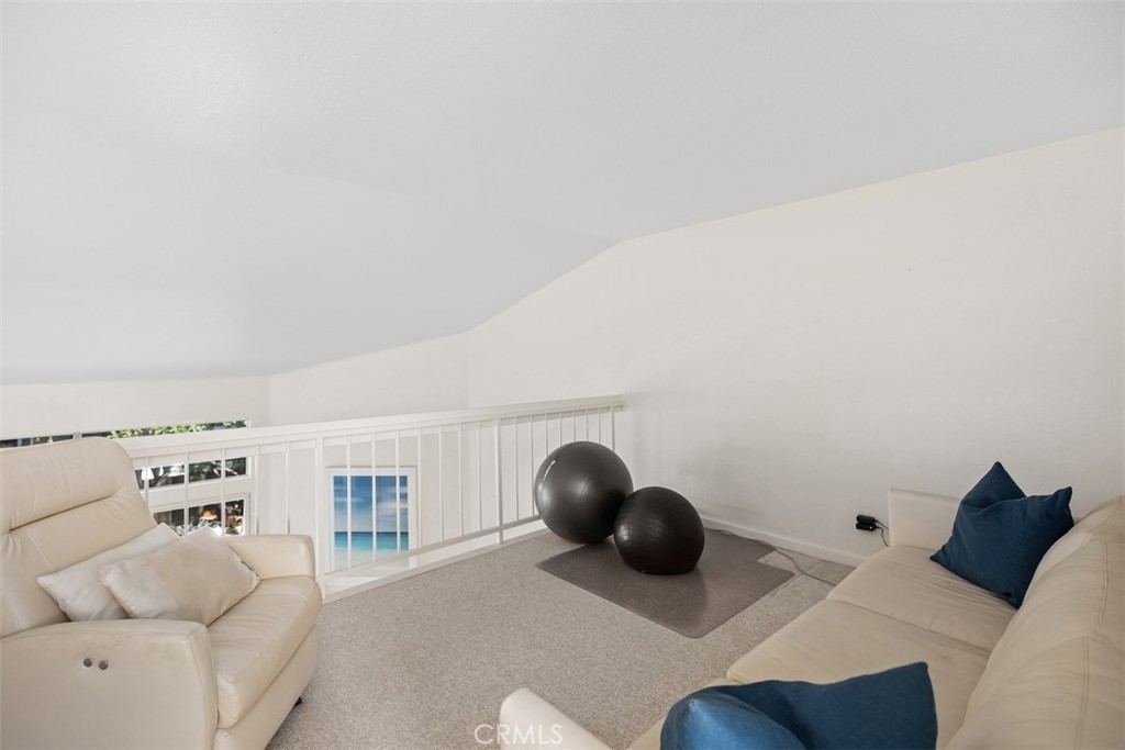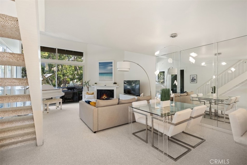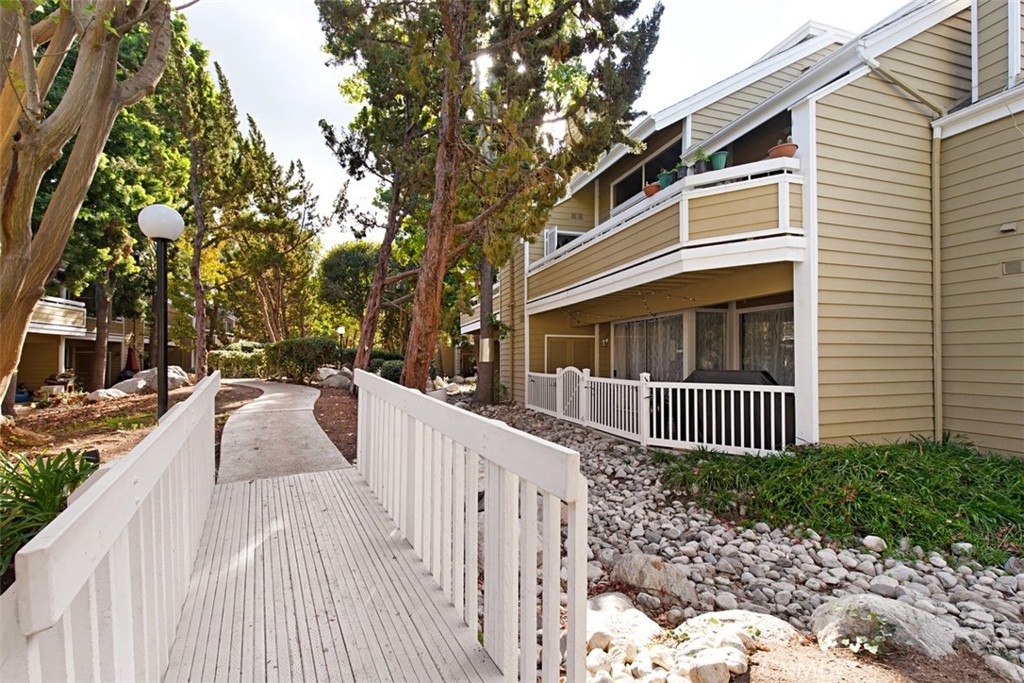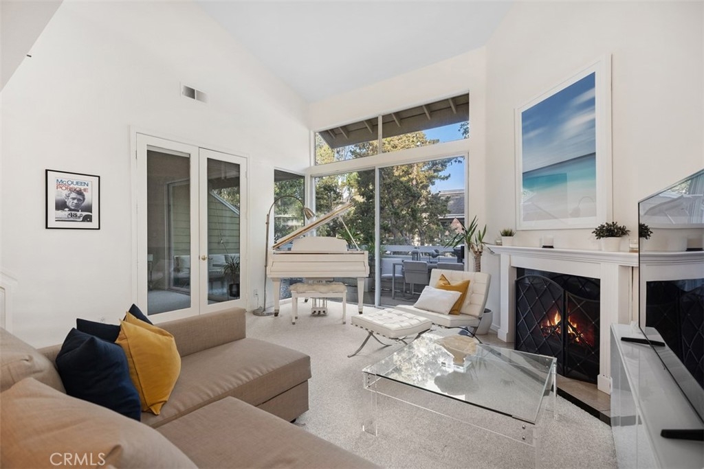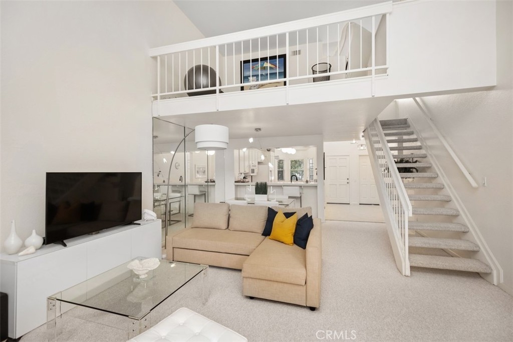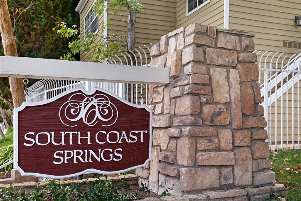 This gorgeous gated South Coast Springs condominium is in an interior location overlooking the community stream. Enter from the 2nd story to the balcony and landing to the tiled entry and open floorplan with wall to wall windows in a tree wooded setting. The living room and dining room feature vaulted ceilings, neutral carpeting and a fireplace. The mirrored wall and contemporary light fixture reflect a light and bright feel. The kitchen has a banquet seating area, wood cabinetry, tile counters and white appliances and tiled floor. The breakfast bar is a pass through to the dining room. The vaulted ceilings continue to the primary bedroom with the full wall organized closet and adjoining bath. This bath has a tub/shower and large vanity. The tall French doors to the suite have custom, top quality roll up privacy blinds. The balcony runs the entire length of the living room and bedroom with sliding glass doors from each. This is the perfect setting to enjoy a morning coffee or an evening drink for relaxation. The loft overlooks the living room and could be an office, den, or even an additional guest quarter. The second bedroom is very separate, has a walk in closet and also has a vaulted ceiling. This bathroom has a skylight, walk in shower and linen closet. The extensive balcony has a closet with the washer and dryer which are included. This home comes with a one car garage and deeded space. There is lots of guest parking available and permits may be given for longer term parking. South Coast Springs has two community pools, two community spas, and extensive greenbelts and walking paths. The rear gate leads to South Coast Plaza where world renowned dining, shopping and entertainment are offered. Where can you get all this at this price in Orange County!