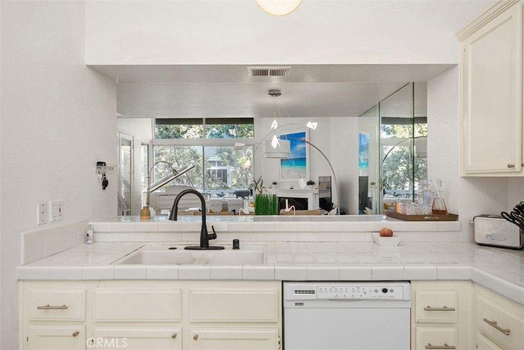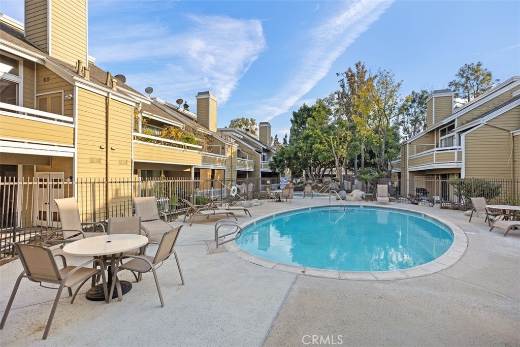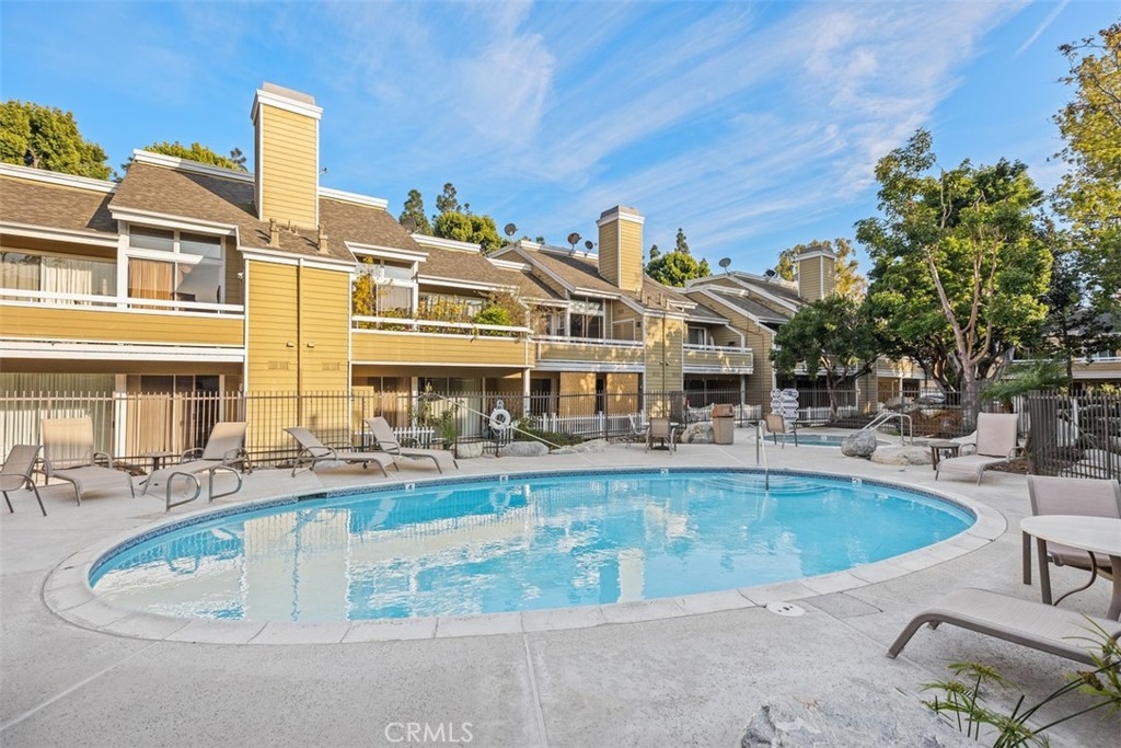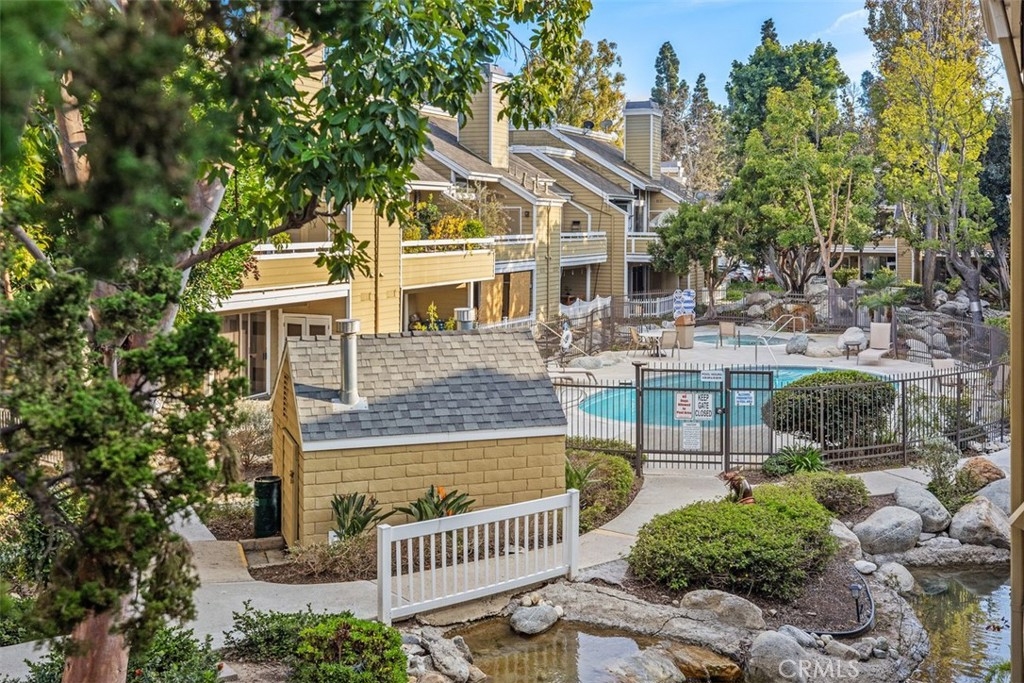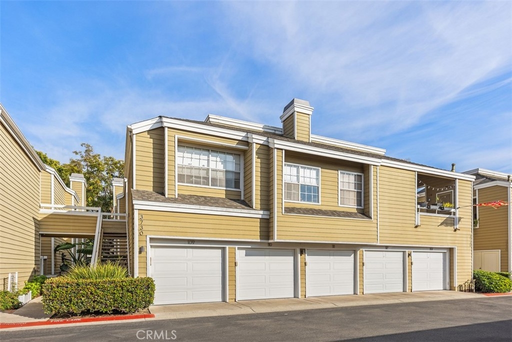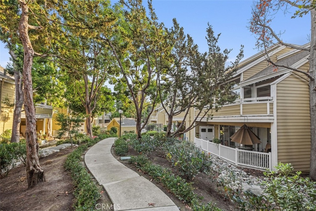 This gorgeous gated South Coast Springs condominium is in an interior location overlooking the community stream. Enter from the 2nd story to the balcony and landing to the tiled entry and open floorplan with wall to wall windows in a tree wooded setting. The living room and dining room feature vaulted ceilings, neutral carpeting and a fireplace. The mirrored wall and contemporary light fixture reflect a light and bright feel. The kitchen has a banquet seating area, wood cabinetry, tile counters and white appliances and tiled floor. The breakfast bar is a pass through to the dining room. The vaulted ceilings continue to the primary bedroom with the full wall organized closet and adjoining bath. This bath has a tub/shower and large vanity. The tall French doors to the suite have custom, top quality roll up privacy blinds. The balcony runs the entire length of the living room and bedroom with sliding glass doors from each. This is the perfect setting to enjoy a morning coffee or an evening drink for relaxation. The loft overlooks the living room and could be an office, den, or even an additional guest quarter. The second bedroom is very separate, has a walk in closet and also has a vaulted ceiling. This bathroom has a skylight, walk in shower and linen closet. The extensive balcony has a closet with the washer and dryer which are included. This home comes with a one car garage and deeded space. There is lots of guest parking available and permits may be given for longer term parking. South Coast Springs has two community pools, two community spas, and extensive greenbelts and walking paths. The rear gate leads to South Coast Plaza where world renowned dining, shopping and entertainment are offered. Where can you get all this at this price in Orange County!