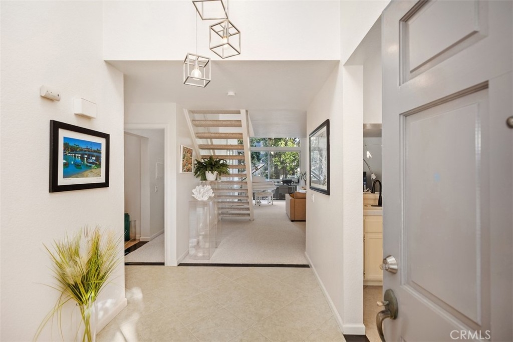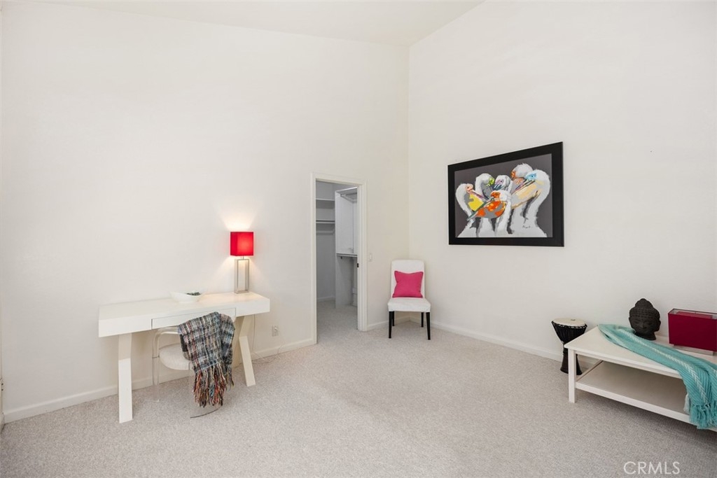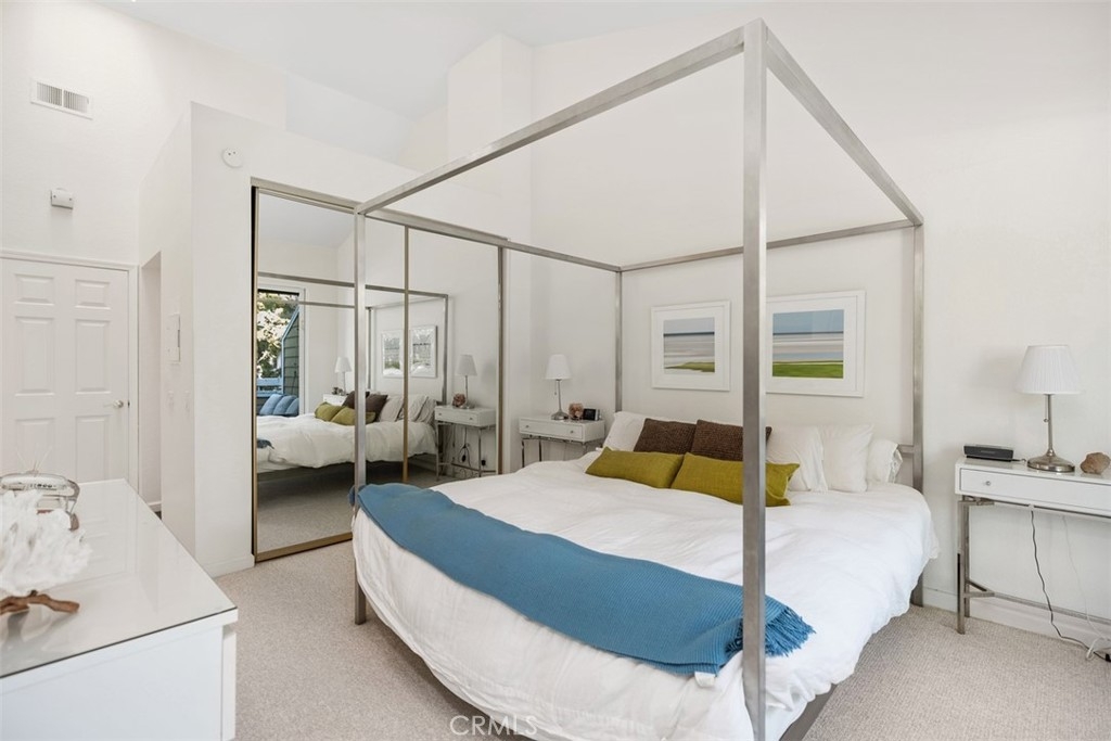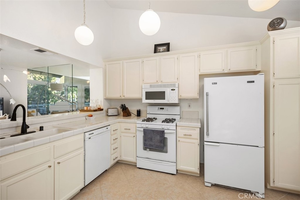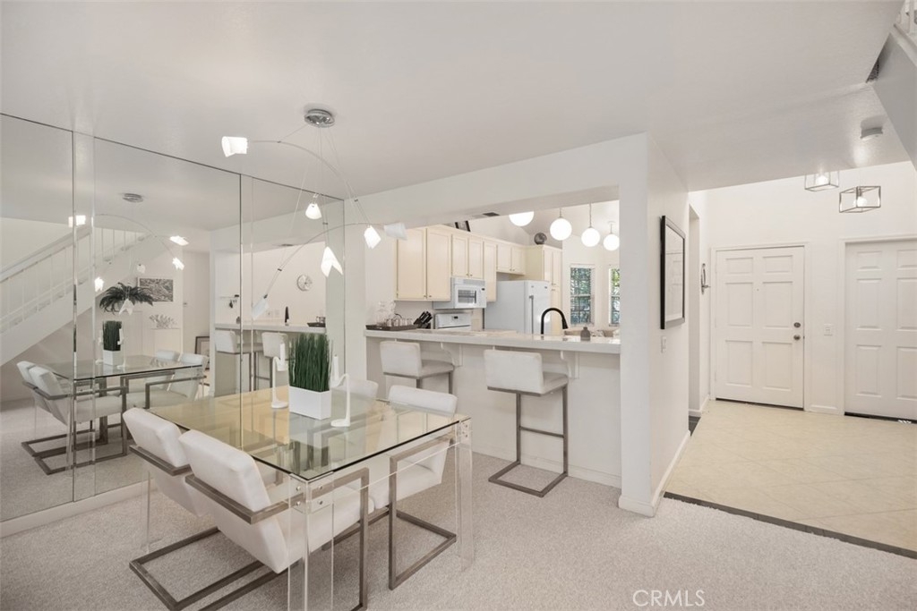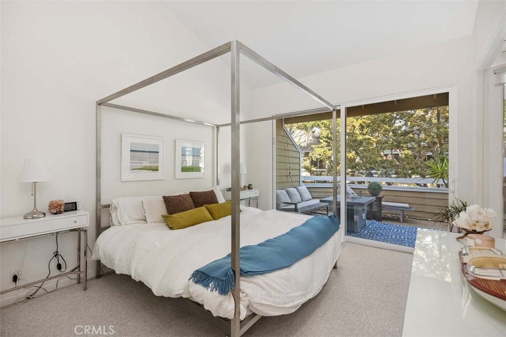 This gorgeous gated South Coast Springs condominium is in an interior location overlooking the community stream. Enter from the 2nd story to the balcony and landing to the tiled entry and open floorplan with wall to wall windows in a tree wooded setting. The living room and dining room feature vaulted ceilings, neutral carpeting and a fireplace. The mirrored wall and contemporary light fixture reflect a light and bright feel. The kitchen has a banquet seating area, wood cabinetry, tile counters and white appliances and tiled floor. The breakfast bar is a pass through to the dining room. The vaulted ceilings continue to the primary bedroom with the full wall organized closet and adjoining bath. This bath has a tub/shower and large vanity. The tall French doors to the suite have custom, top quality roll up privacy blinds. The balcony runs the entire length of the living room and bedroom with sliding glass doors from each. This is the perfect setting to enjoy a morning coffee or an evening drink for relaxation. The loft overlooks the living room and could be an office, den, or even an additional guest quarter. The second bedroom is very separate, has a walk in closet and also has a vaulted ceiling. This bathroom has a skylight, walk in shower and linen closet. The extensive balcony has a closet with the washer and dryer which are included. This home comes with a one car garage and deeded space. There is lots of guest parking available and permits may be given for longer term parking. South Coast Springs has two community pools, two community spas, and extensive greenbelts and walking paths. The rear gate leads to South Coast Plaza where world renowned dining, shopping and entertainment are offered. Where can you get all this at this price in Orange County!