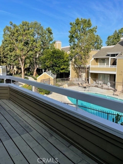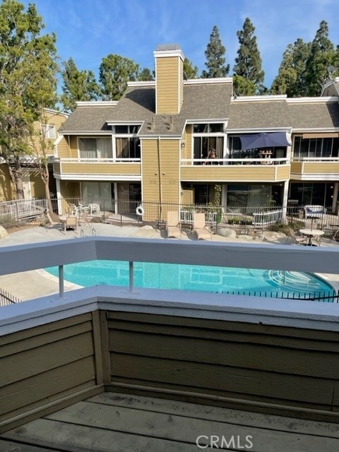 Well located 2 bedroom, 2 bath upper condo in South Coast Springs complex - easy access to South Coast Plaza with its array of restaurants, shops and entertainment, plus easy freeway access. This light and bright condo has the benefit of views over the pool area. A spacious and functional floor plan with high ceilings, a fireplace in living room, along with large sliding doors to a deck area- perfect for warm summer days. The kitchen has white tile counters, stainless steel appliances, and newly painted kitchen cabinets. The washer and dryer are located conveniently in their own separate closet area. 1 car designated garage close by at bottom of stairs. The South Coast Springs community is well landscaped with nicely maintained grounds, abundant trees and trickling streams. Community pools and spas. HOA dues include trash, water and common area maintenance. This complex is on leased land.