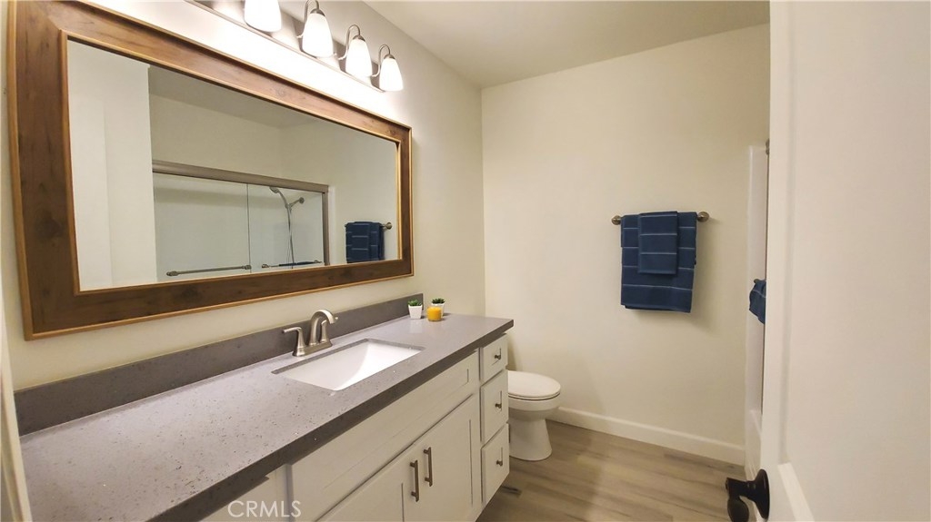 Beautiful brand new remodeled 2bath 2bed unit in South Coast Metro. Kitchen has shaker style cabinets with quartz counters and glass subway backsplash tile. Waterproof Luxury Vinyl Plank flooring throughout living space and plush carpet in bedrooms. Scraped ceilings and modern 2 panel doors throughout. Both Bathrooms have new vanitys and showers. Brand new furnace installed and much much more. 914sqft of living space located on 2nd floor, Master bedroom features en suite bathroom with large walk in closet. Convenient central heating and cooling. Association includes pools spa, bbq’s, clubhouse, charging stations for electric cars, a clubhouse, and a fully remodeled gym. HOA fee also includes water, gas and trash, Complex is FHA approved. Conveniently located near South Coast Plaza, 55 and 405 Freeways and many restaurants.