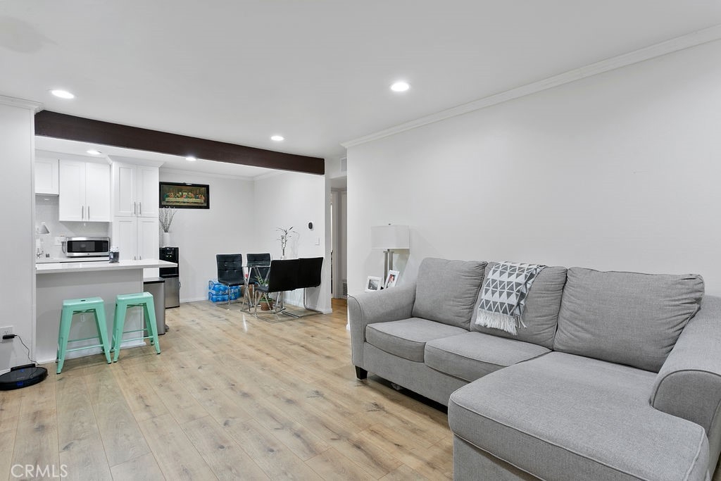 Grab this totally remodeled, move-in ready, ground-floor 1-bedroom condo with a large private patio before someone else does! Indeed, the lucky new owner of this light and bright property, which is located near South Coast Plaza, can immediately begin enjoying it without lifting a finger! Relish a gorgeous kitchen with quartz counters and backsplash, stainless-steel appliances, newer cabinets with slow-close drawers and doors, recessed lighting, luxury vinyl plank flooring throughout, and crown molding throughout which are all features you don’t have to purchase yourself. The large bedroom offers a walk-in closet, which offers plenty of storage for your wardrobe, and the double-pane windows and sliding-glass door add to your privacy and minimize your utility bills. Also savor the large private patio, where you can relax after a busy day. Don’t forget the newer central HVAC and heating system. South Coast Villas is a guard-gated community that includes two pools, spa, a large gym with cardio room, and barbecue areas, meaning you have entertainment at your fingertips. HOA fees include water, hot water, trash, gas, common area maintenance, upkeep of the grounds, property exterior upkeep, and master insurance. Situated within the heart of South Coast Metro, South Coast Villas is walking distance from many world-class restaurants and shopping and entertainment venues, including South Coast Plaza, the Segerstrom Center for the Arts, and the South Coast Repertory. The community's easy access to the 405, 55, 73, and 5 freeways and hundreds of employment centers is an added bonus. Indeed, when you live in South Coast Metro, all of Orange County's attractions, including Disneyland and world-famous beaches, are only a short drive away.