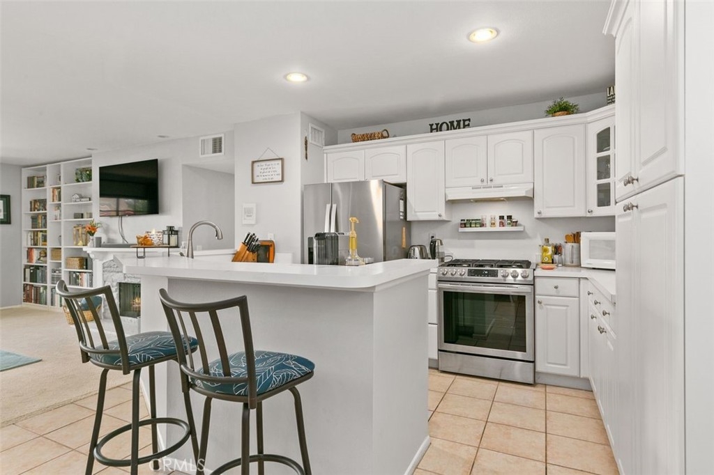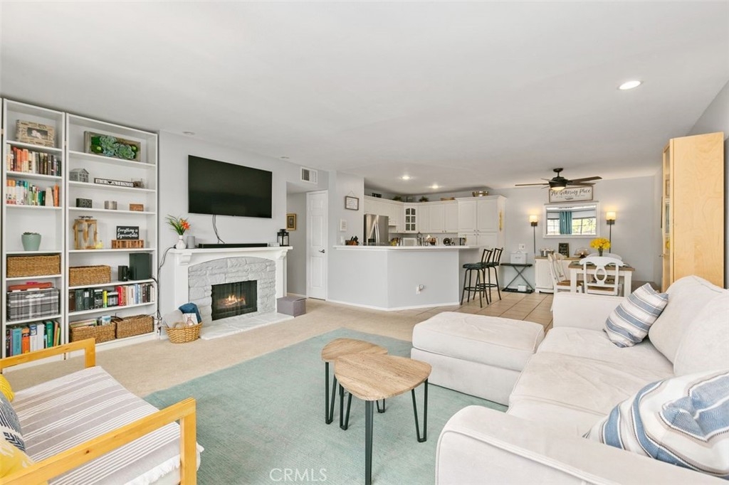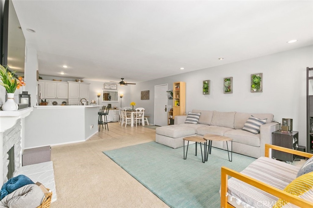 Welcome to this beautiful ground level single-story unit located in the St Albans gated community. This bright and airy condo, which has been recently painted, features approximately 1,170 square feet of livable space with two bedrooms and two bathrooms, including a remodeled primary bath. The master bedroom has 2 closets including a walk-in closet. The open floor plan has a great living room area with a gas fireplace that flows into the dining area and kitchen. Other features include built-in adjustable shelving in all the closets, recessed lights, Nest thermostat, newer electrical outlets, upgraded valves for the range and an in-unit washer and dryer. This unit also offers an outside patio to sit down and relax. The community has two pools and spa, two tennis courts, a clubhouse with gym and a sauna. It is conveniently located close to South Coast Plaza with convenient access to the 405 and 55 freeways.