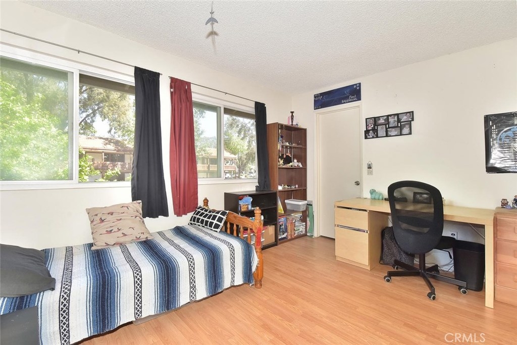 2 story condo with open floor plan with laminate flooring, breakfast bar, living room with fireplace and sliding door provides access to a patio perfect for entertaining. Spiral stairs lead to the 2 upstairs spacious bedrooms and a Full Bathroom (Master Bedroom has private entry). Both bedrooms have walk-in closet and unit has closet space for storage needs.