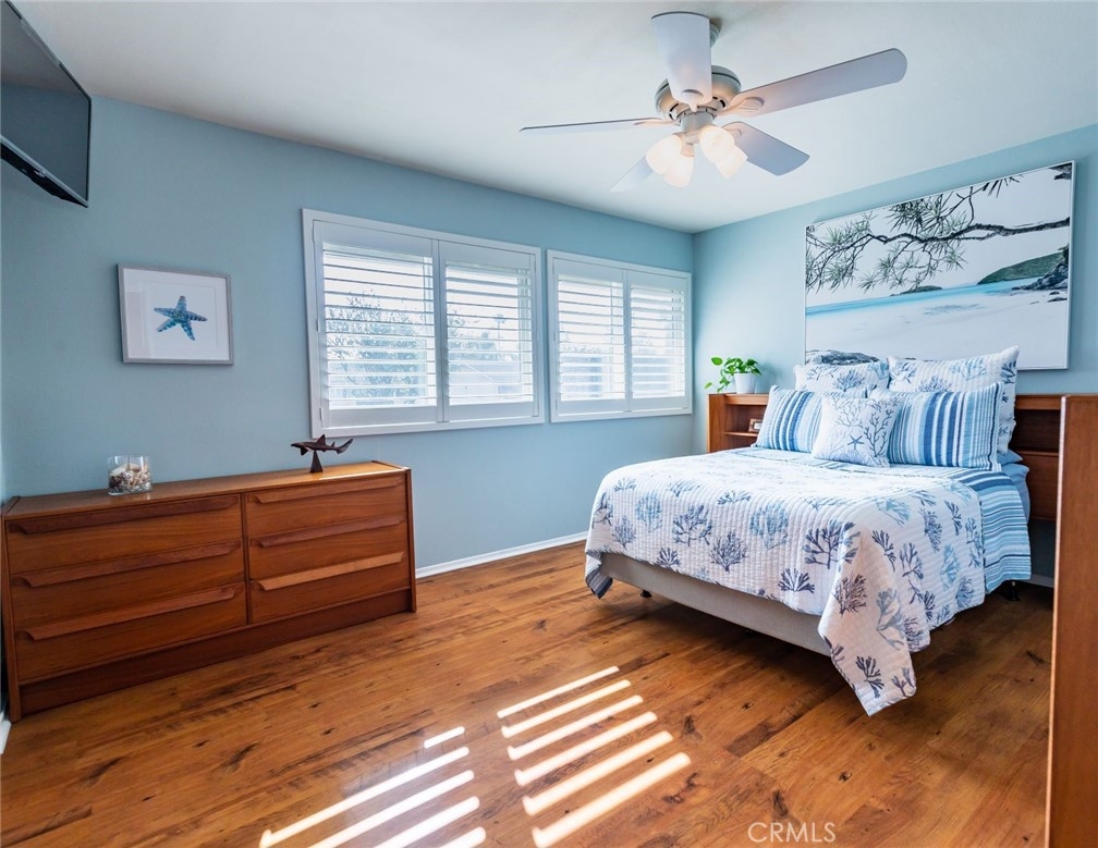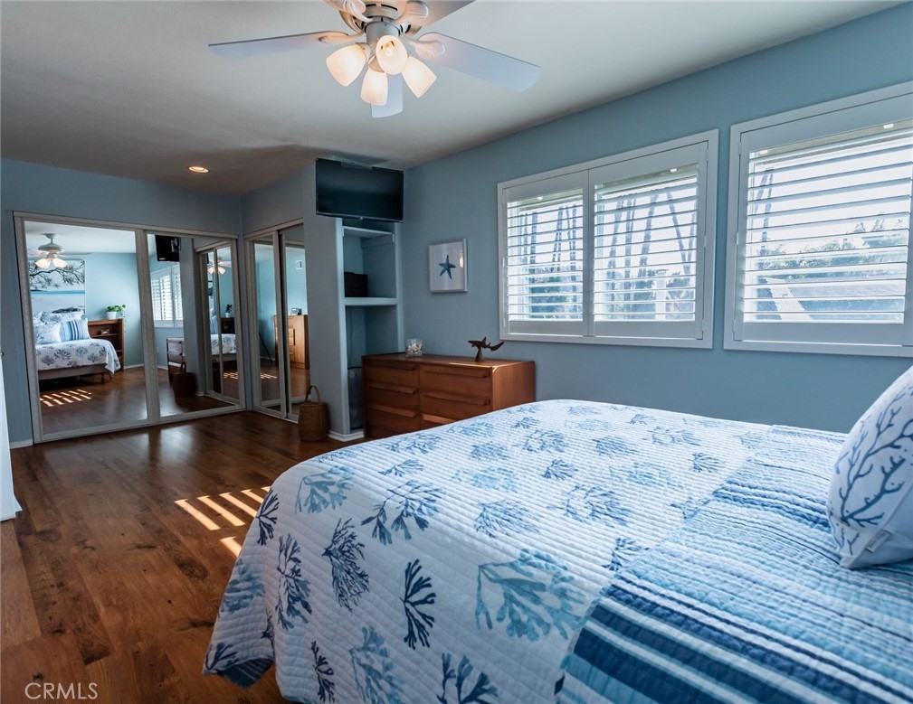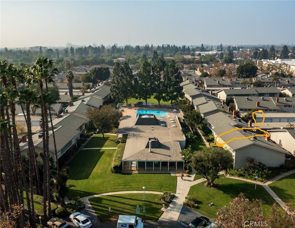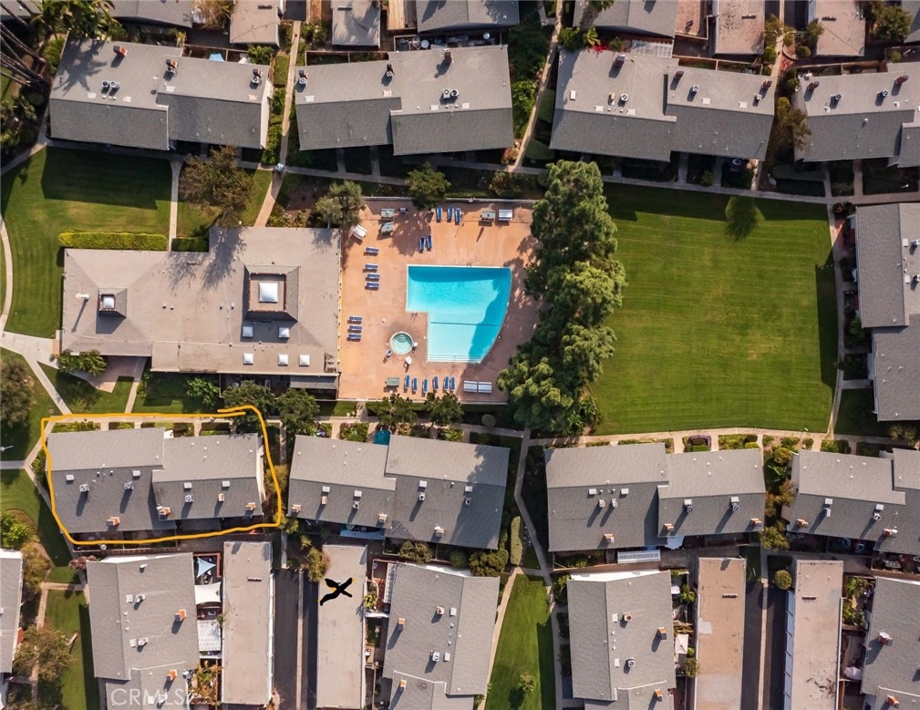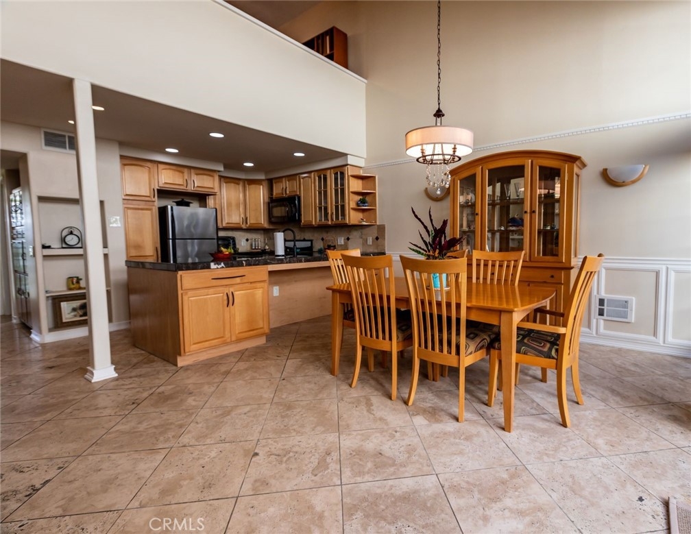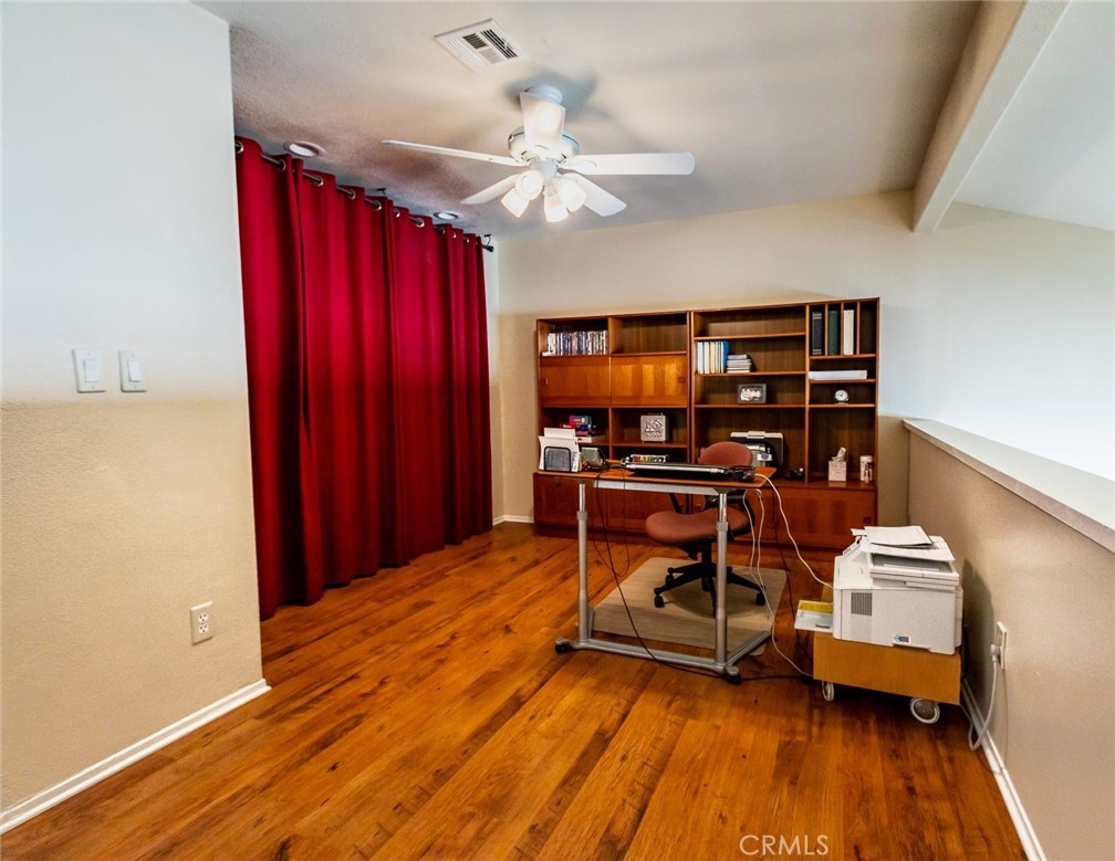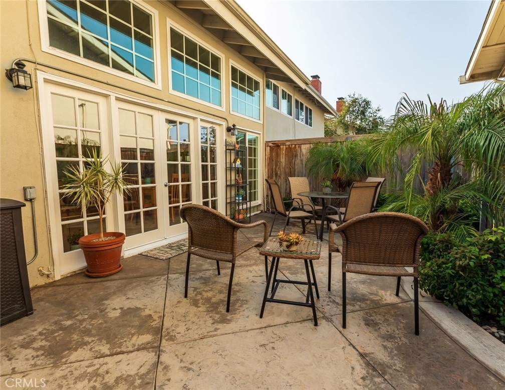 Buyers won't be disappointed when entering this updated home. Downstairs has open living area with lots of natural light coming in. Flooring is travertine in the living areas. French doors open to private fenced patio area. Kitchen has granite counters with peninsula opening to dining and living area, great for entertaining. Peninsula has kitchen sink and seating for two or three on dining side. Dining area wall has dental molding 8 foot high (est height), from kitchen wall to back window as well as library type wainscoting. At entry area non attached storage cabinet in decorator niche. Bedroom on left with large closet, mirrored wardrobe doors, plantation shutter, wood laminate flooring. Right side has bath with travertine shower, custom vanity with wood counter. Going up the wood stairs to second level find a loft overlooking the living area wood laminate floors on second level, loft has area for closet. The owners suite has dual closets in dressing area, on suite bath was recently upgraded, quartz counter on vanity. To get to community laundry area, just walk out patio gate go to left it's right there. Single detached garage is a few steps further. Parking for second vehicle is not assigned. Patio table and 4 chairs stay. This truly is a move in ready unit. HOA maintains the complex grounds, water, trach, pool, spa, bbq area, rec room. Convenient location.