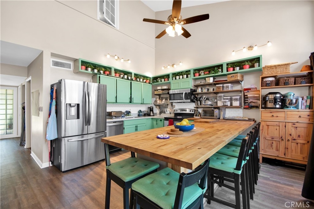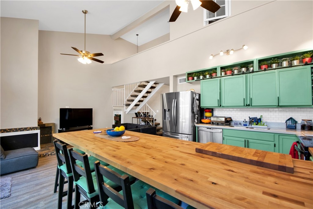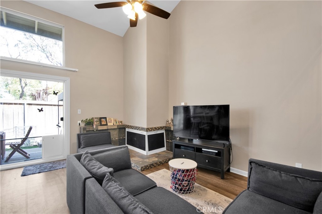 Beautiful two-story three-bedroom, two-bath home end unit with no one above or below! Over $40,000 in renovations were made by the current owners. Wonderful open floor plan. Huge living room with cozy fireplace. Kitchen remodeled in 2020 featuring sliding barn style cabinets painted in an eye catching blue. A brand new air-conditioning unit was placed on the roof. Floor to ceiling glass lets the sun shine in. One bedroom down and two upstairs including the primary that boasts an en-suite style with entry to the master bath through a large walk-thru closet. Stroll through the well-manicured grounds to enjoy the community amenities; pool, spa, sauna and club house. The property is located in the award-winning Tustin School District. Walk to shops, restaurants, and fitness center. Easy access to the 5, 55, and 22 freeway. Monthly HOA includes water and trash. Completely move in ready so you can enjoy your amazing home.