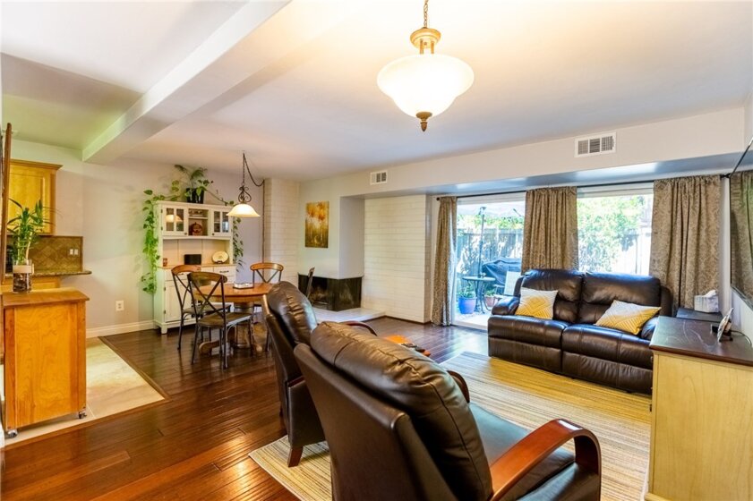 Welcome home to Santa Ana's finest 2 bedroom 1.5 bath *end unit* condo within the quiet community, The Tennessean. Completely UPDATED throughout with exquisite finishes, this home is fully MODERNIZED and TURNKEY! A beautiful and bright new front door and neutral gray walls form a beautiful contrast to the genuine hardwood flooring in the downstairs living space while travertine tile adds a level of sophistication in the kitchen and bathrooms. No expense has been spared to fully MODERNIZE this home starting with the removal of the original wall heater and acoustic ceilings. Be the envy of your neighbors while you cool off with your NEW AC - not a standard feature in this development! The kitchen has been remodeled for more functionality by removing the breakfast bar to open up the space to the family room, re-faced cabinetry in a bright and inviting shade, granite countertops, stone backsplash and plenty of storage. Kick off your shoes and enjoy the brand new carpet upstairs where you will find two spacious bedrooms with custom built walk-in closets, new light fixtures, and a luxurious bathroom complete with a brand new DOUBLE SINK vanity and fixtures, and a custom tile shower/bath! Natural light graces the home through updated vinyl windows. Storage options are nearly endless! Located centrally within the convenience of the city, close to the 55/22/5/91 freeways, shopping, dining, and the Tustin School District, the only thing missing is YOU!