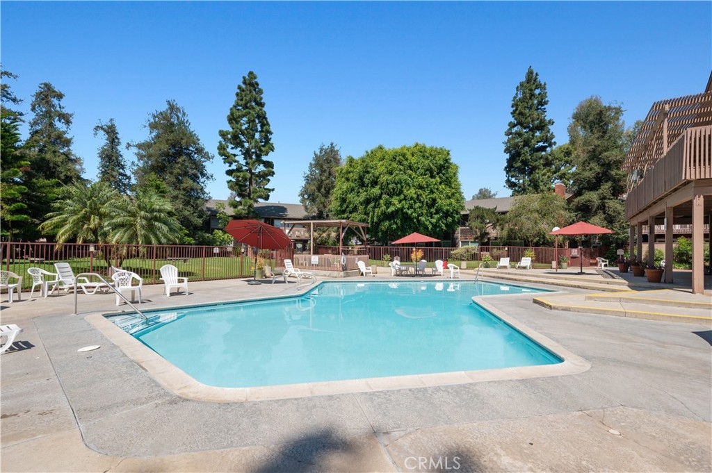 Welcome home! This fabulous ground floor corner unit has been remodeled and has an amazing location convenient to all community amenities - just steps away from the community pool & spa, sand volleyball court, BBQ area, clubhouse, gym, laundry room, offering a resort-like escape right at your doorstep. Renovated kitchen with granite countertops, popcorn ceilings removed, recessed lighting, new toilet, the sliding glass door leading to a large patio. The main bathroom has been renovated. Other features include a walk-in pantry, smart thermostat, keyless entry, and large storage unit behind car port. Great location convenient to parks, restaurants, grocery stores, and the freeway. This turnkey unit invites you to simply pack your bag and savor the delight of your new home. HOA includes water, gas and trash. And best part - your pets are allowed at The Redwoods! Got two cars? No problem! There's an assigned carport space with storage space and you can get a parking permit to park in an uncovered spaces for a second car. Low property tax and low HOA dues. Act now as this one will not last.