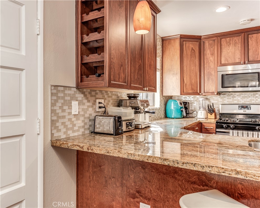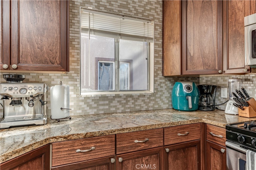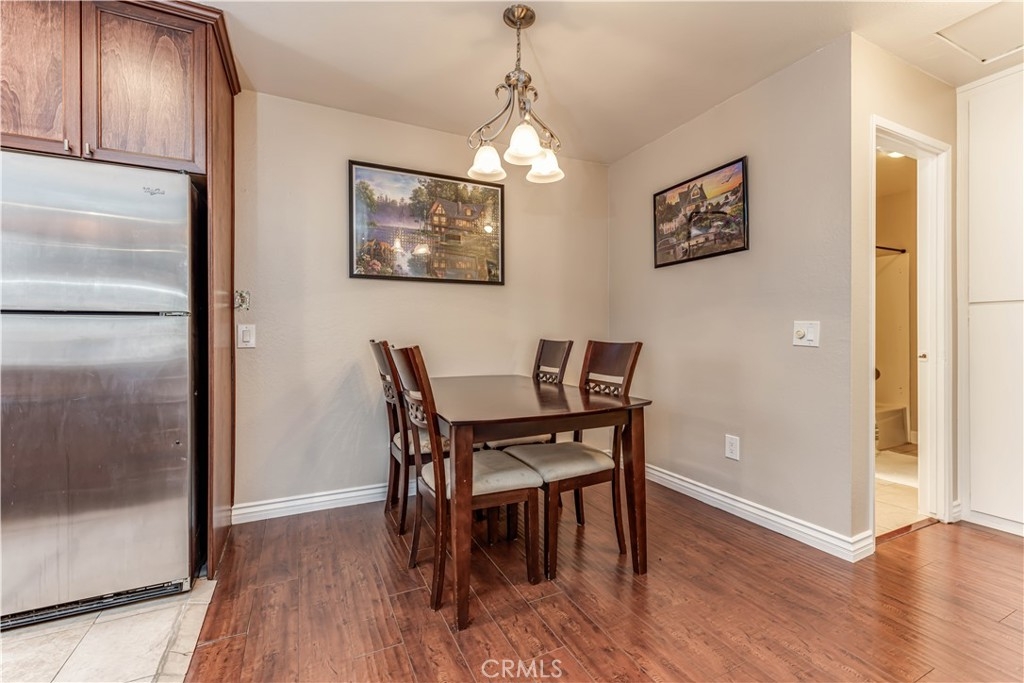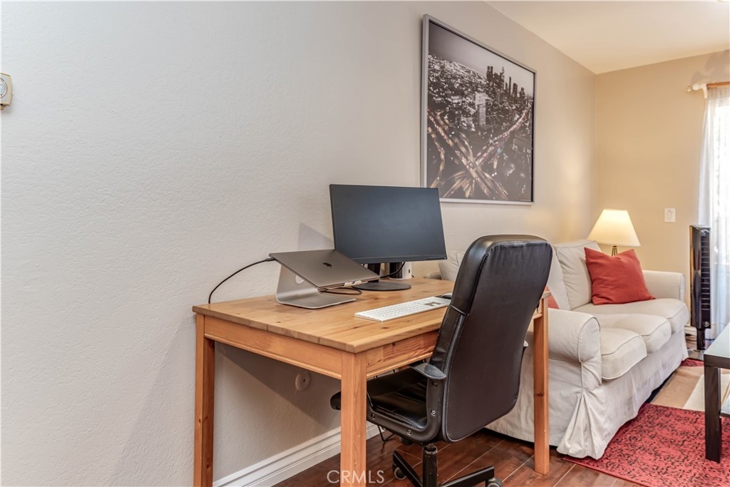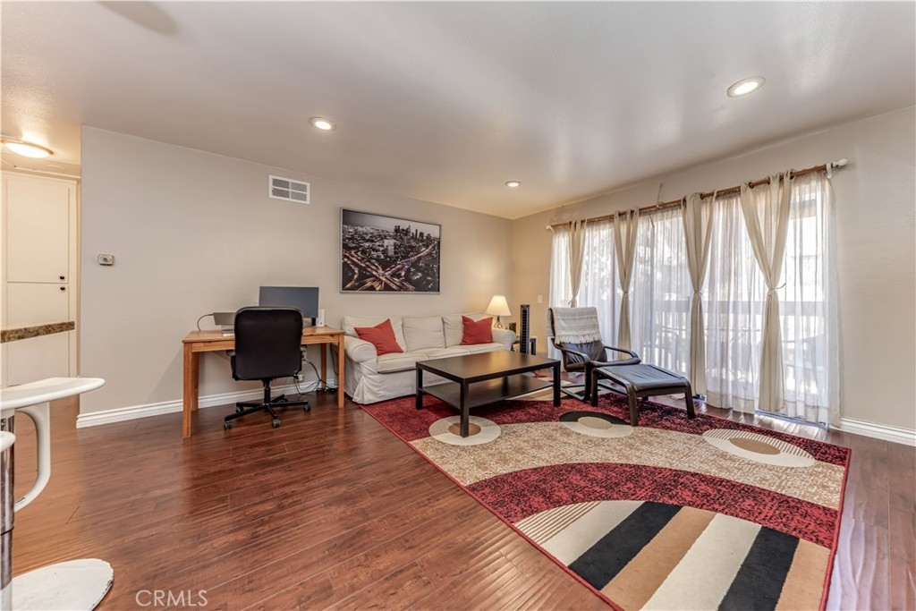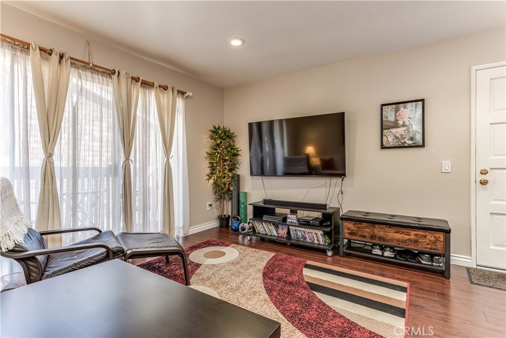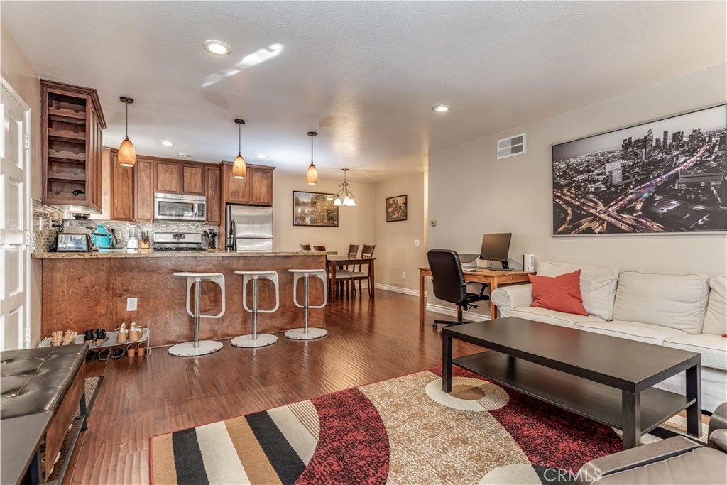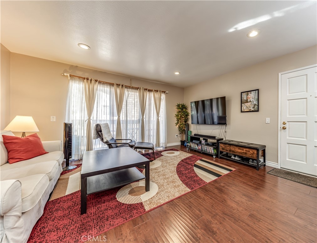 Welcome home to Santa Ana! Centrally located upstairs 1 bedroom, 1 bathroom condo is now on the market! This unit is the perfect starter property! Major features of the home include the open floor plan, recessed lighting, large kitchen, and private balcony. Enter the home and walk into the open and airy great room with an abundance of natural light. The kitchen provides ample storage, gas stove, built in microwave and breakfast bar. Just steps away you will find the eating area and full bathroom. The full bathroom showcases granite countertops and a shower-in-tub. Open the living room patio door and step onto your private outdoor balcony. The bedroom features a walk in closet and ceiling fan. The home also includes 1 covered carport parking spot and built-in storage. The Redwoods community is well maintained with a great HOA including access to laundry, pool, spa, clubhouse, and paid water, gas, and security!