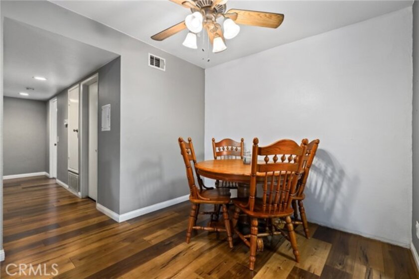 Lovely condo with 2 bedrooms in the peaceful Redwoods community! Step through the front door into a spacious, open living area featuring sliding doors that lead to your own private patio. The layout flows effortlessly into the dining area, creating an inviting space for everyday living and entertaining. The kitchen offers stainless steel appliances and ample storage. The primary bedroom is generously sized and includes a ceiling fan and walk-in closet. The secondary bedroom also features a ceiling fan and mirrored closet doors. HVAC system installed in 2019. The community offers serene ponds, a sparkling pool and spa, a clubhouse, and on-site laundry. Come see it today!