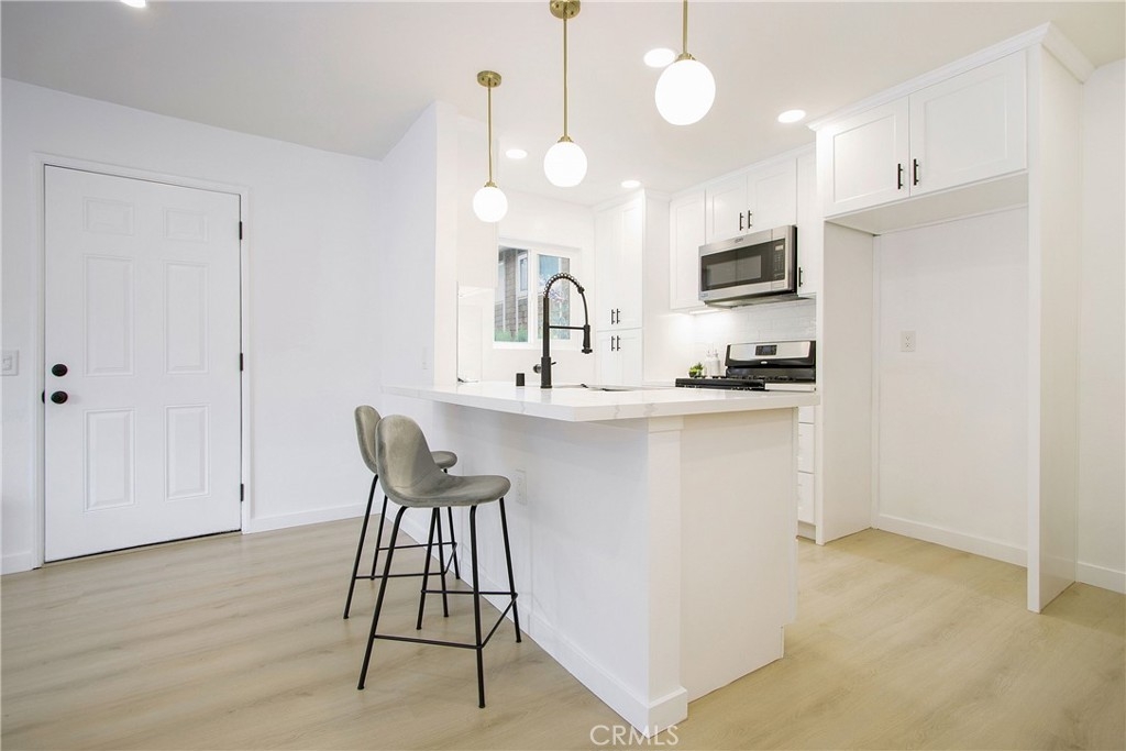 Welcome to an impeccably renovated haven in the heart of Santa Ana, CA. This stunning 1 bed, 1 bath sanctuary has undergone a complete transformation, showcasing the essence of modern living. Step inside to discover new vinyl flooring, freshly painted walls, the warm glow of recessed lighting that accents every corner with elegance and a brand-new thermostat that enhances your control over indoor climate for optimal comfort year-round. The kitchen is a dream, featuring exquisite quartz countertops, brand-new cabinets, and tasteful hardware, all harmonizing seamlessly to create a culinary oasis. The spacious bathroom includes a new toilet, a new marvelous quartz countertop, a tub/shower, new tile flooring and meticulous attention to detail. Relish in the convenience of an expansive walk-in closet, providing ample storage space for all your needs. Step out onto the enclosed patio and savor moments of tranquility in your secluded retreat. Rest assured knowing the building has recently undergone re-piping by the HOA, ensuring your comfort and convenience. Proximity to the laundry room adds to the ease of daily living, while the unit comes with not one, but two parking spaces - a coveted carport and a permitted space. Additional perks include storage in carport, access to a clubhouse, a private gym, and the ultimate indulgence of a pool and spa. Education excellence awaits with access to the award-winning Tustin School District. Enjoy seamless access to freeways, Disneyland, an array of restaurants, supermarkets, and shopping destinations. This is more than a home; it's a lifestyle defined by sophistication, convenience, and unparalleled comfort. Don't miss your chance to experience the pinnacle of Santa Ana living.