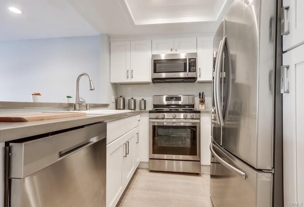 Absolute pride of ownership! Turn-key spacious, well-maintained and inviting 1-bedroom condo in heart of Santa Ana downtown area; many upgrades including newer flooring throughout, kitchen appliances and interior paint; large bedroom with 2 closets and window with exterior view toward front of complex; unique bathroom offers a shower & tub, and separate walk-in shower; modern touches include light switches with dimmers; air conditioning will keep you cool in summer heat along with sparkling swimming pool; conveniently located community washer & dryer room in building; walking distance to numerous amenities and venues including restaurants, shopping, civic center and Santa Ana Bowl; Angel Stadium just a few minutes away; modernization of downtown public transportation (under construction) will enhance area aesthetics and ease of commute