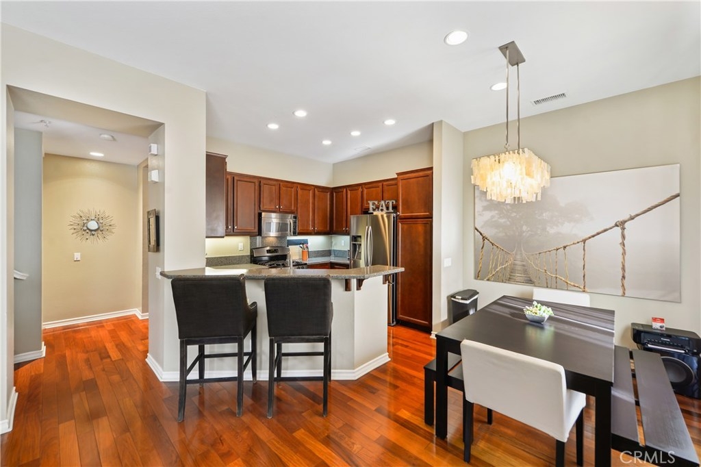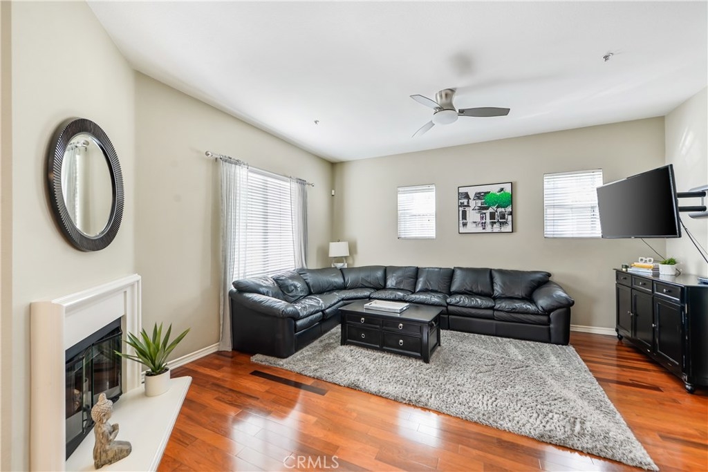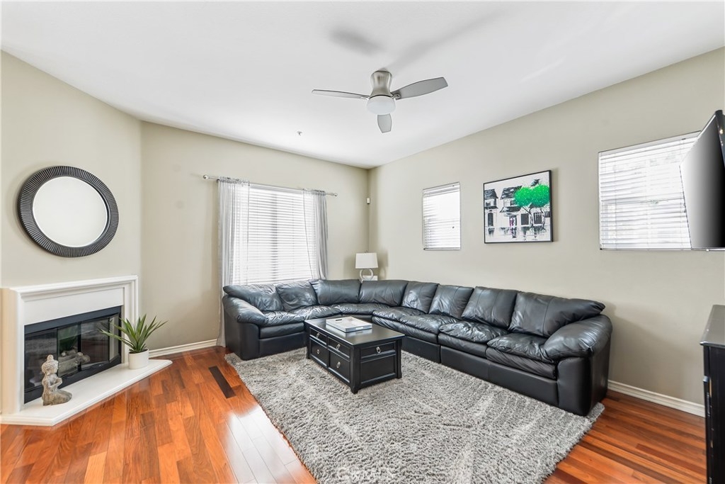 Beautiful end unit townhouse located in the Luxury Vantage gated community. Spacious open floor plan with hardwood floors , window blinds , storage and lots of natural light throughout the home. Large living room with fireplace and ceiling fan. Kitchen with stainless steel appliances, granite counters plenty of cabinets and a breakfast bar. dining area with balcony. Powder room also located on this level. Both bedrooms are located upstairs, Master bedroom with a ceiling fan, walk in closet, large tub , separate shower, and double sinks. Large second bedroom with ceiling fan and a full bath in the hall. This unit has a large attached 2 car garage with laundry hook ups. Beautiful community with a resort style pool area with sparkling pool, cabanas, bbq areas, spa, showers, bathrooms. Grassy areas and beautiful landscaping throughout the complex. Exterior of building has been recently painted. Plenty of guest parking, and carports for residents on a first come first serve basis. Close to Shopping, airport, South Coast Plaza, beaches, and very convenient to freeways.