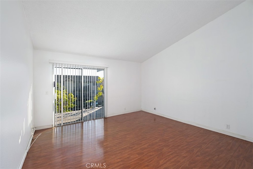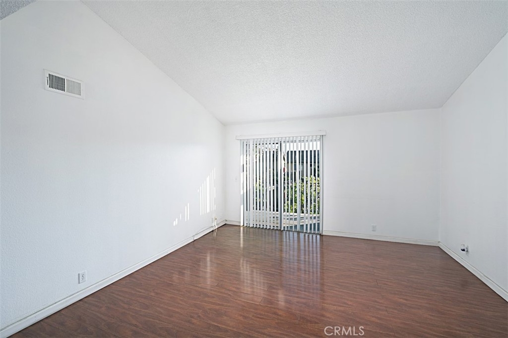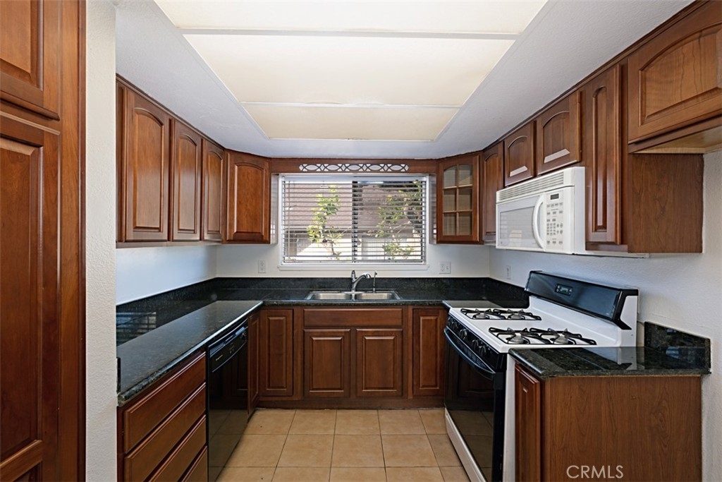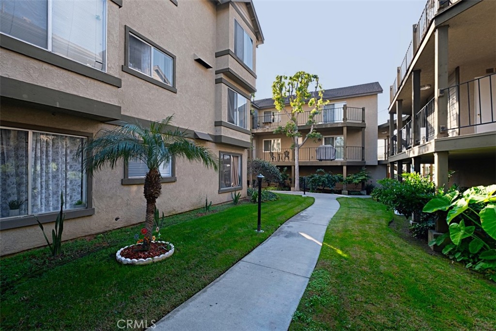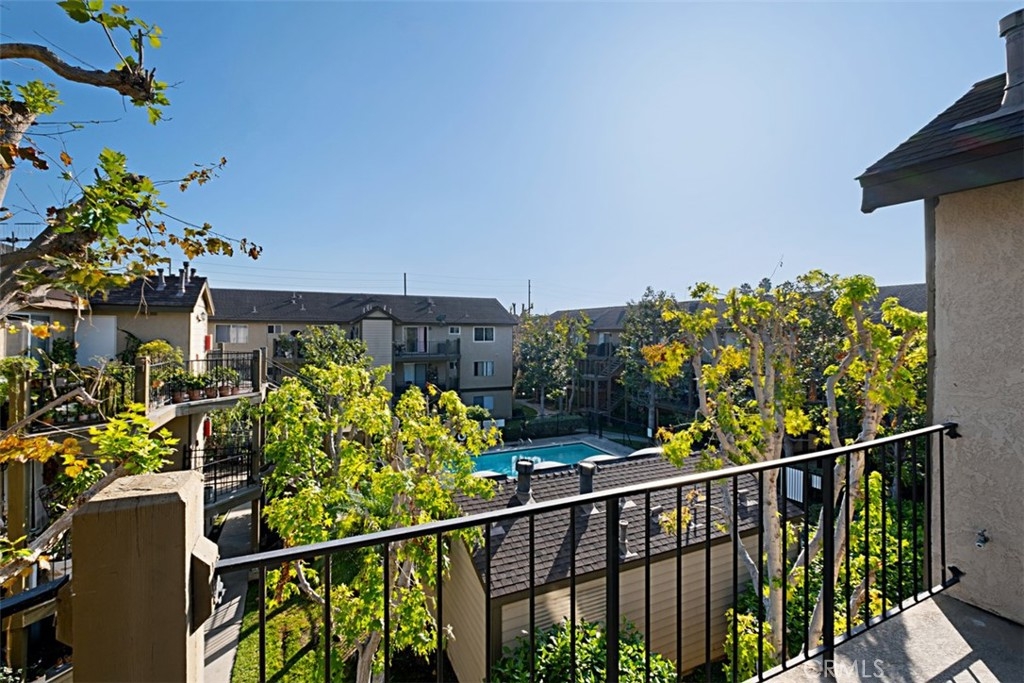 Welcome to this beautiful two bedroom, two bathroom home in a quiet and gated community! This home is a rare end unit with the bonus of not having another unit above it. The home features a sprawling balcony that overlooks the community swimming pool. The master bedroom has a full bath and walk-in closet. There is a spacious second bedroom with a full bath next to it. The living room is bright and airy with vaulted ceilings and is open to a dedicated dining area. Newer laminate flooring throughout. The kitchen was upgraded and features newer cabinets and countertops. There is a washer and dryer closet conveniently located in the hallway. There is a one-car garage and an extra assigned parking space. Community features include a swimming pool and spa. This community is very centrally located to the freeway, shopping and dining. Come see for yourself!