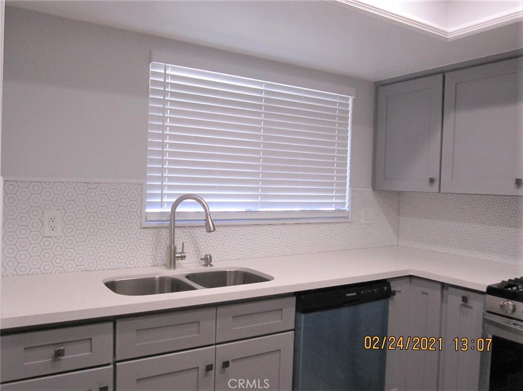 This beautiful and charming home is perfect for first-time buyer and investors! This single-level open concept unit with vaulted ceiling has 2 bedrooms and 1 bathroom that has been fully upgraded, freshly painted with new moldings, new recessed lighting, and new flooring thru-out. Brand new kitchen with Corian countertop, cabinets, and all new appliances. Gorgeous bathroom with new bathtub and enclosures, new cabinets and countertop, lighting , mirror, and ceramic tile flooring. The unit has 1 garage and 1 assigned parking space. Beautiful gated complex with well maintained grounds, community pool. This is an absolute turnkey and ready to move in!!