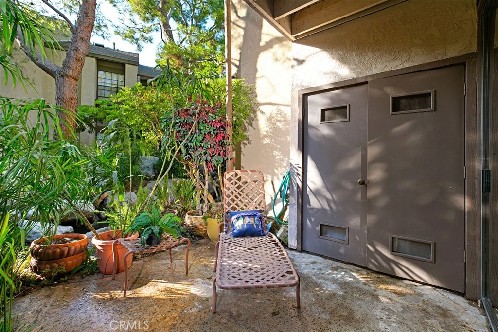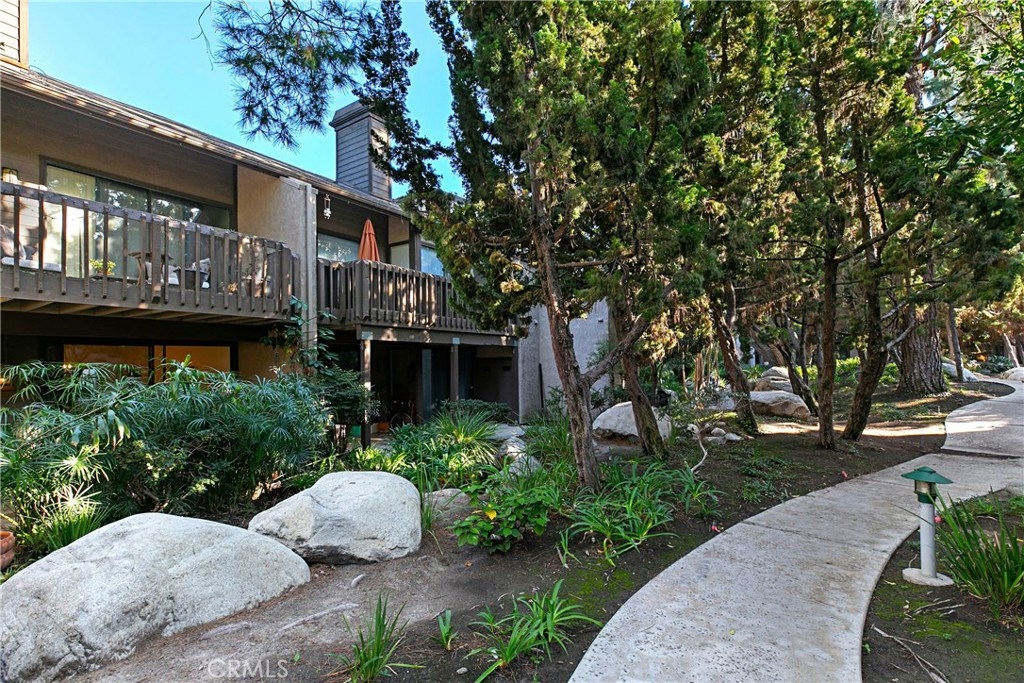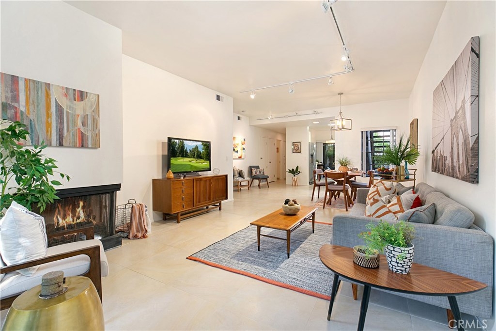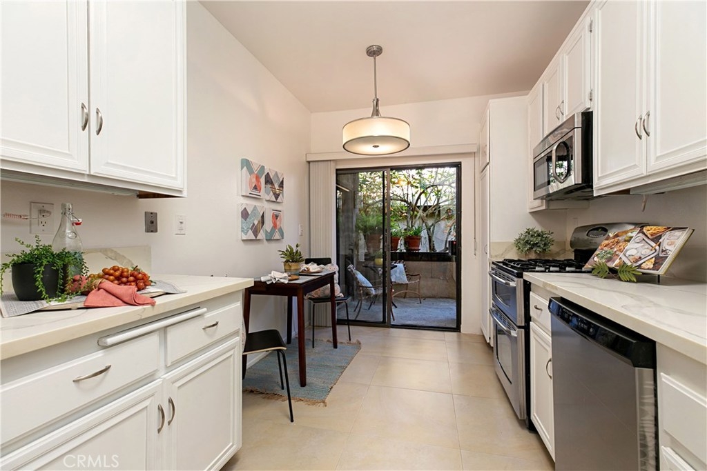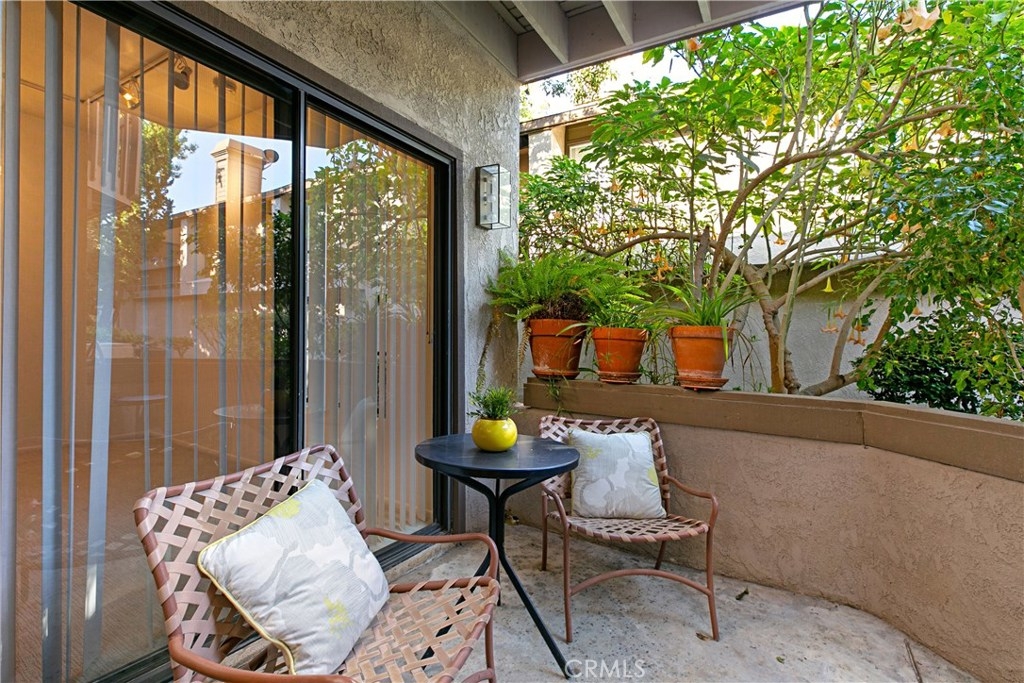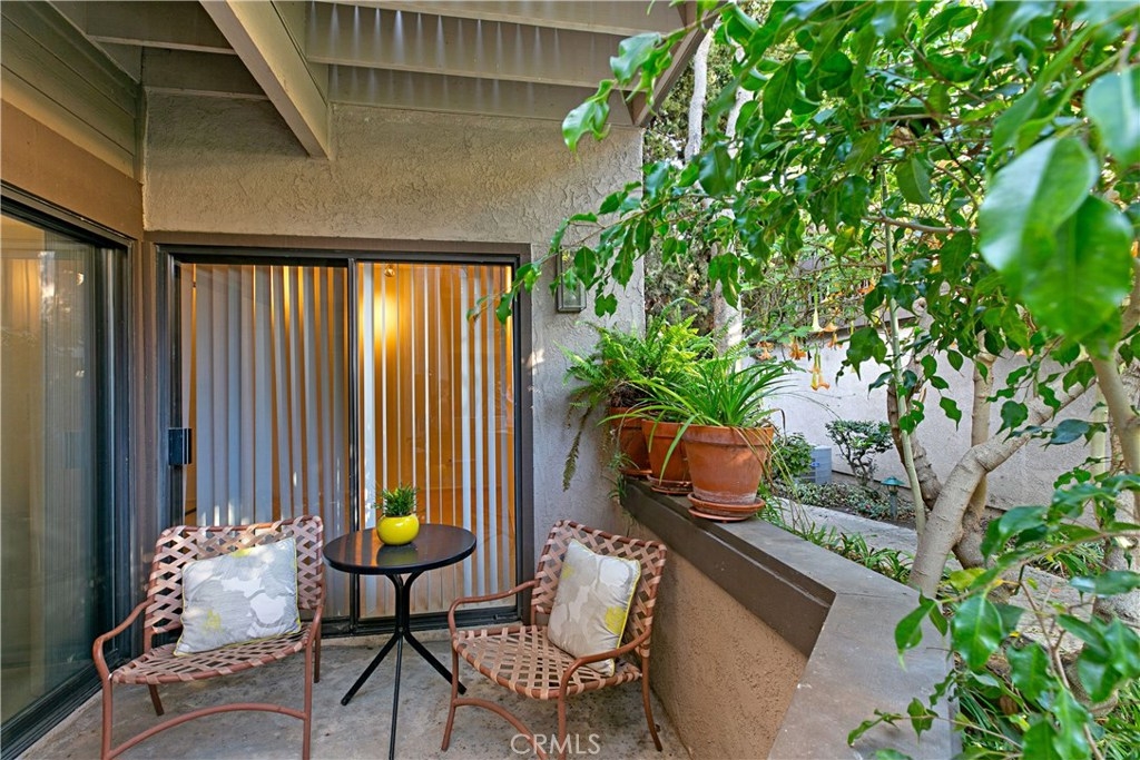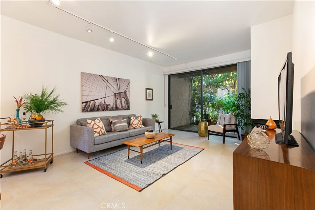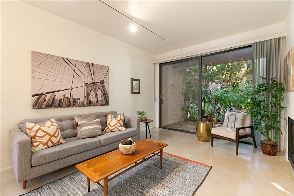 Welcome to this contemporary ground level condo in the gated-community of Woodlake. Great open flowing floor plan, centered around a spacious living room with high ceilings & an inviting fireplace. Large glass sliding doors open up to your large, private back patio with views & sounds of running streams & nature right outside... Ideal for the indoor outdoor living enthusiasts. Features include stylish tile floors throughout living area, designer style paint, smooth ceilings, and central a/c and heat. Large, upgraded kitchen, with eating area, sleek quartz counters, white cabinetry and 2nd patio. Spacious master bedroom with ample closet space, attached en suite bathroom and access to rear patio with private laundry closet. Both bathrooms have been upgraded with quartz counters and new sinks. Woodlake is an Exquisitely Landscaped Zen and Nature inspired gated Community with sounds of Running Streams and Waterfalls, an abundance of Ponds, Flowers, Plants and Trees and Beautiful Views throughout, yet still located in the Trendy, Cosmopolitan area of South Coast Metro. Down the street from some of OC's Finest Shops, Restaurants, Entertainment, South Coast Plaza, OC's Segerstroms Performing Arts Center, SoCo, & Metro Point.
