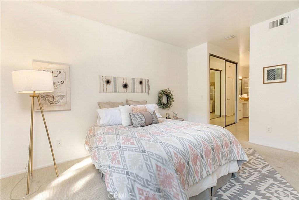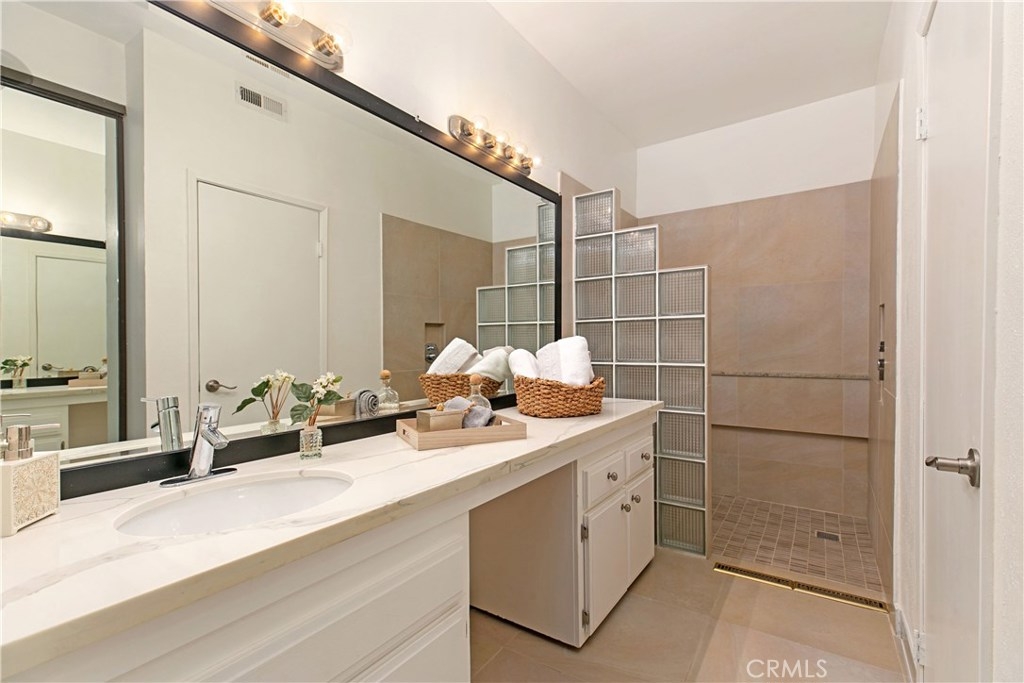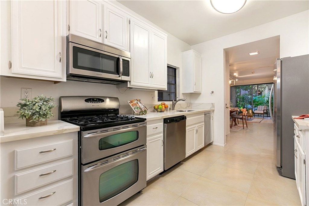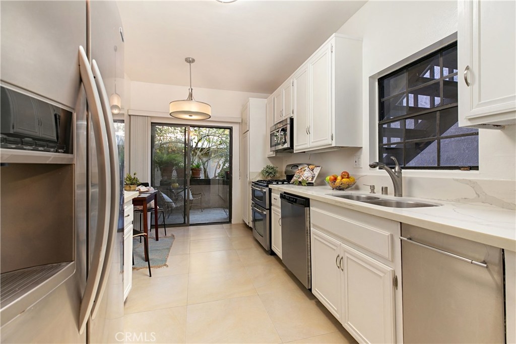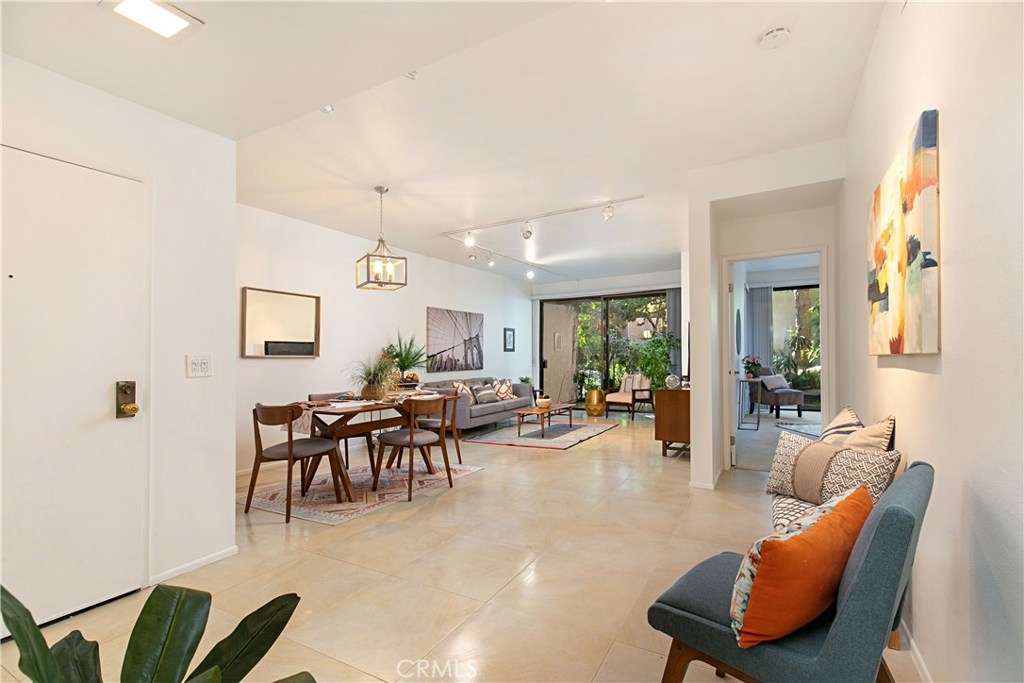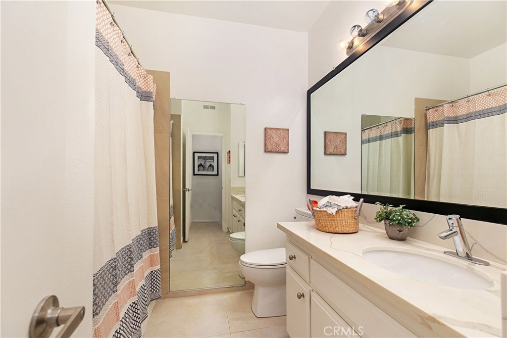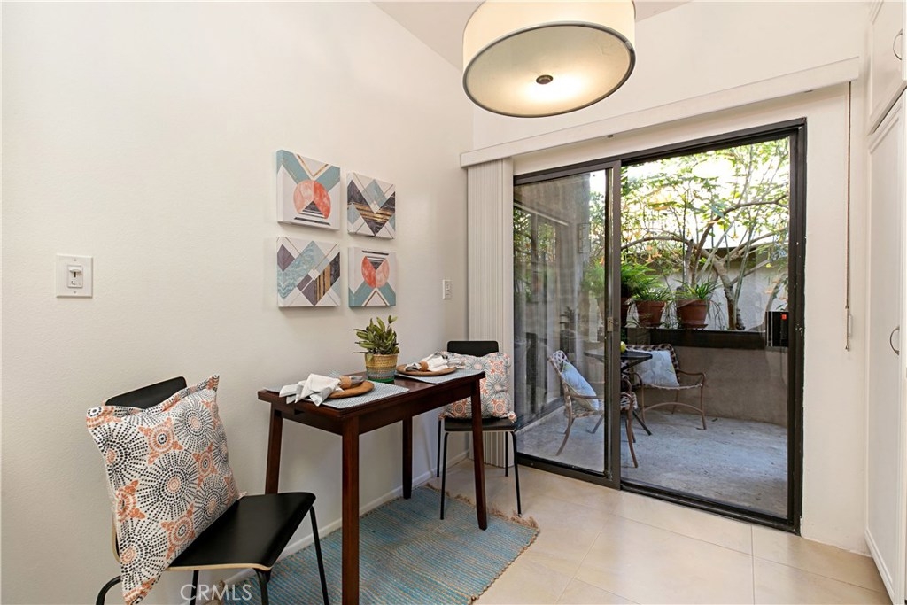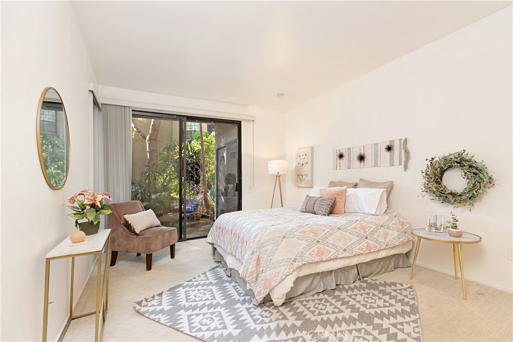 Welcome to this contemporary ground level condo in the gated-community of Woodlake. Great open flowing floor plan, centered around a spacious living room with high ceilings & an inviting fireplace. Large glass sliding doors open up to your large, private back patio with views & sounds of running streams & nature right outside... Ideal for the indoor outdoor living enthusiasts. Features include stylish tile floors throughout living area, designer style paint, smooth ceilings, and central a/c and heat. Large, upgraded kitchen, with eating area, sleek quartz counters, white cabinetry and 2nd patio. Spacious master bedroom with ample closet space, attached en suite bathroom and access to rear patio with private laundry closet. Both bathrooms have been upgraded with quartz counters and new sinks. Woodlake is an Exquisitely Landscaped Zen and Nature inspired gated Community with sounds of Running Streams and Waterfalls, an abundance of Ponds, Flowers, Plants and Trees and Beautiful Views throughout, yet still located in the Trendy, Cosmopolitan area of South Coast Metro. Down the street from some of OC's Finest Shops, Restaurants, Entertainment, South Coast Plaza, OC's Segerstroms Performing Arts Center, SoCo, & Metro Point.