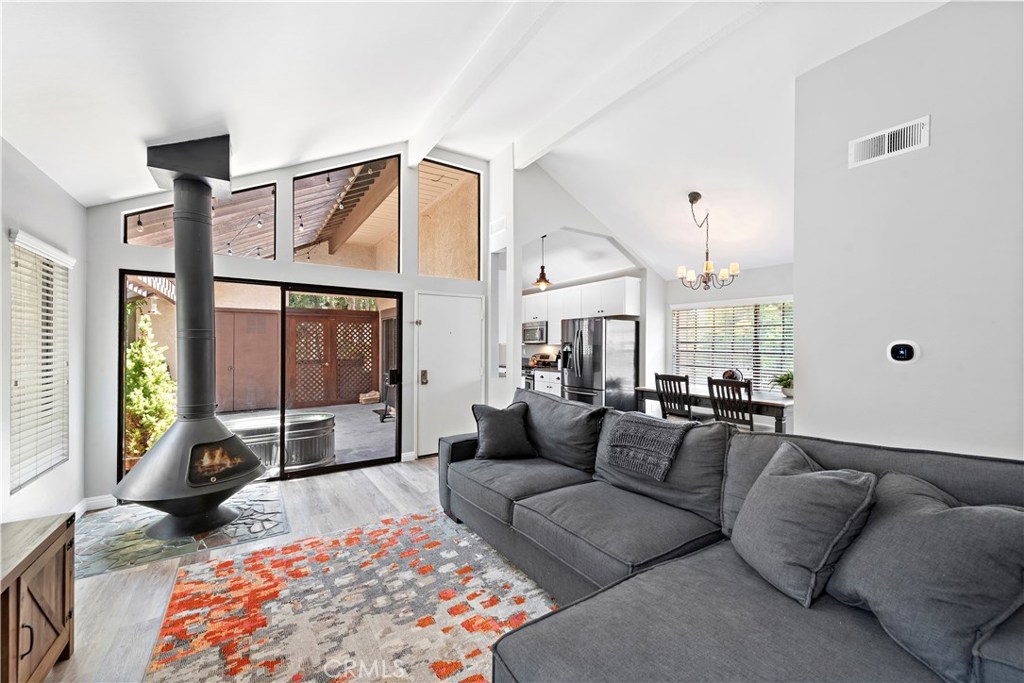 Rustic upper end unit with private staircase entry & tons of appeal. Best available unit in Woodlake! Centrally located in the trendy South Coast Metro Area, the gated community of Woodlake is filled with wonderful water features, tropical greenery & an association pool/spa. The safe & tranquil feel is perfect for daily walks & inward reflection. Tucked away from the street, in the quiet back area of the development, this spacious 1 bedroom home has been updated. Step into the large private patio which opens out through sliding glass doors from both the living room & galley-style kitchen. Perfect for indoor/outdoor living & entertaining. Kitchen has been stylishly redone with quartz counters, beautiful cabinetry, oversized sink, faucet & a new garbage disposal. If the weather turns, take a seat by the freestanding pot-belly fireplace in the spacious living room, or snuggle up in the oversized bedroom. The bright & open feel of this home is accentuated by vaulted cathedral ceilings & new modern flooring. Popular shiplap siding adorns the master dressing area walls which seamlessly flows into a spacious walk-in closet with built-ins to maximize useable space. Just blocks away from the popular South Coast Plaza, superb restaurants, & much more, this home is perfect for anyone looking to upgrade their living situation. VA APPROVED. Hurry before it's gone! #virtualopenhouse https://us04web.zoom.us/j/9507626612?pwd=cTNacitPTzMwTDZLd2d5R0RlRSsvdz09 07/19/2020 12:00 PM- 12:30 PM