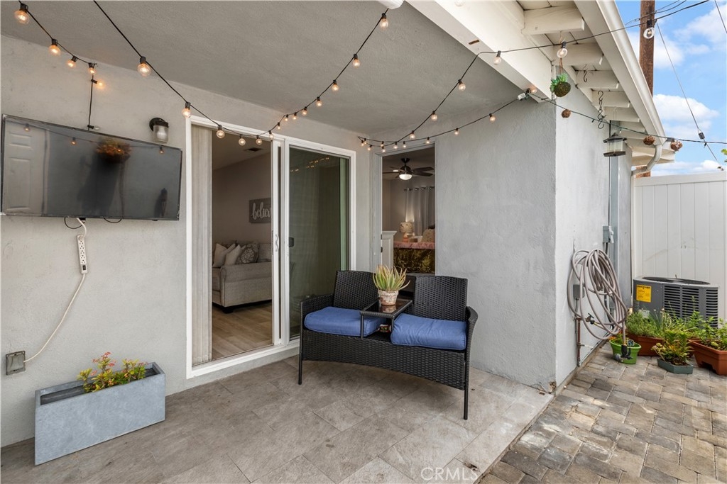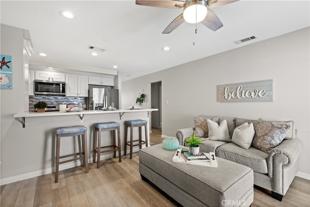 Stunning SINGLE story wonderfully upgraded condo nestled in the back of the complex! Central AC, in-unit laundry, and attached carport are just a few of the many features that render this home a unique living experience. Natural light floods the living space appointed with luxury reclaimed wood style flooring, sparkling white paint, new windows and recessed lighting throughout. Gorgeous kitchen with quartz counters, stainless steel appliances and dazzling white cabinetry overlooks family space with cozy fireplace and slider to the pavered back patio. Two large bedrooms offer ceiling fans and spacious wardrobes, while the ensuite master and guest baths are fully remodeled with stunning showers, vanities, and fixtures. This beautifully maintained Woodlyn North hidden gem of a community offers peaceful walking paths with citrus trees, roses and lush landscaping, plus a sparkling pool, BBQ/cabana area, and clubhouse. Ideal OC location near the 22, 55, and 5 freeways as well as walking distance to Starbucks, groceries etc. Highly renowned Tustin Unified School District, including Foothill High School! Don’t miss this turnkey beauty!