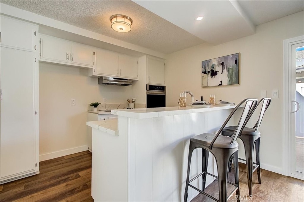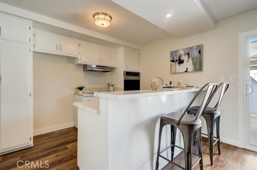 Completely remodeled, this beautiful Woodlyn North townhome is move-in ready! Luxury plank floors, new plush carpet and fresh neutral paint throughout complement the bright and open floorplan. Enter into the inviting living room that neighbors the dining room featuring a cozy fireplace and sliding doors to the spacious and private back patio. The dining room opens to the kitchen, remodeled with fresh white cabinets, quartz cabinets, stainless steel appliances and a breakfast counter. Down the hall, the primary bedroom features light-catching sliding doors to the back patio and an en-suite full bathroom with a walk-in shower. Two secondary bedrooms are generously sized and share the full hall bathroom. Centrally located near the 5, 55 and 22 freeways, nearby award-winning Tustin Unified schools and near shopping, dining and entertainment options. Welcome home!